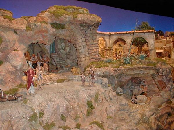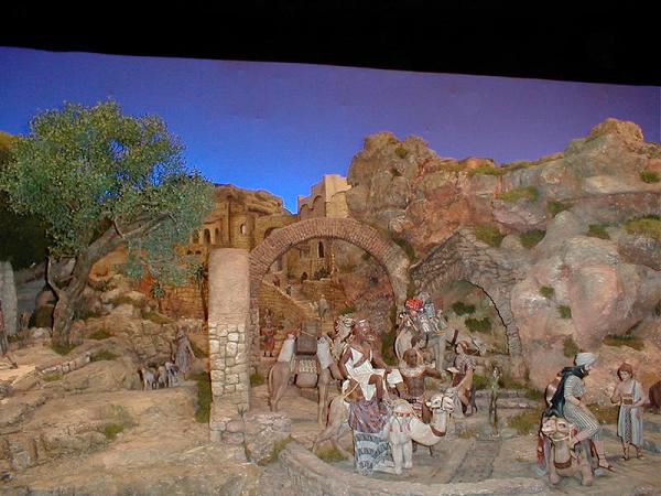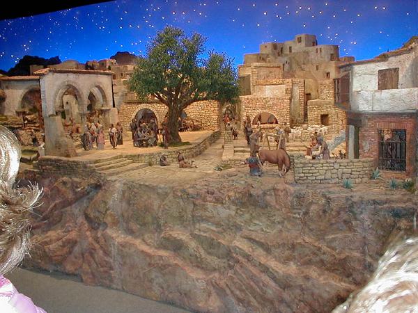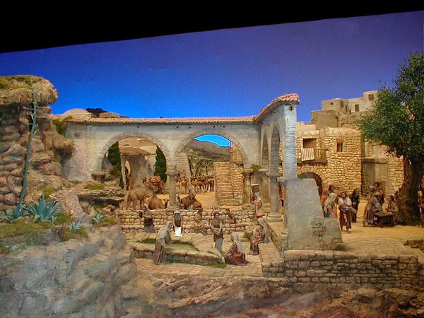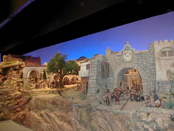 Tengo la satisfación de poneros fotografi¡ías del Belen Bancaja realizadas en el mismo día de su apertura y que tuve la oportunidad de realizar en la visita que hicimos conjuntamente los foreros del encuentro en Sevilla con la Asociación de Belenistas de Sevilla.