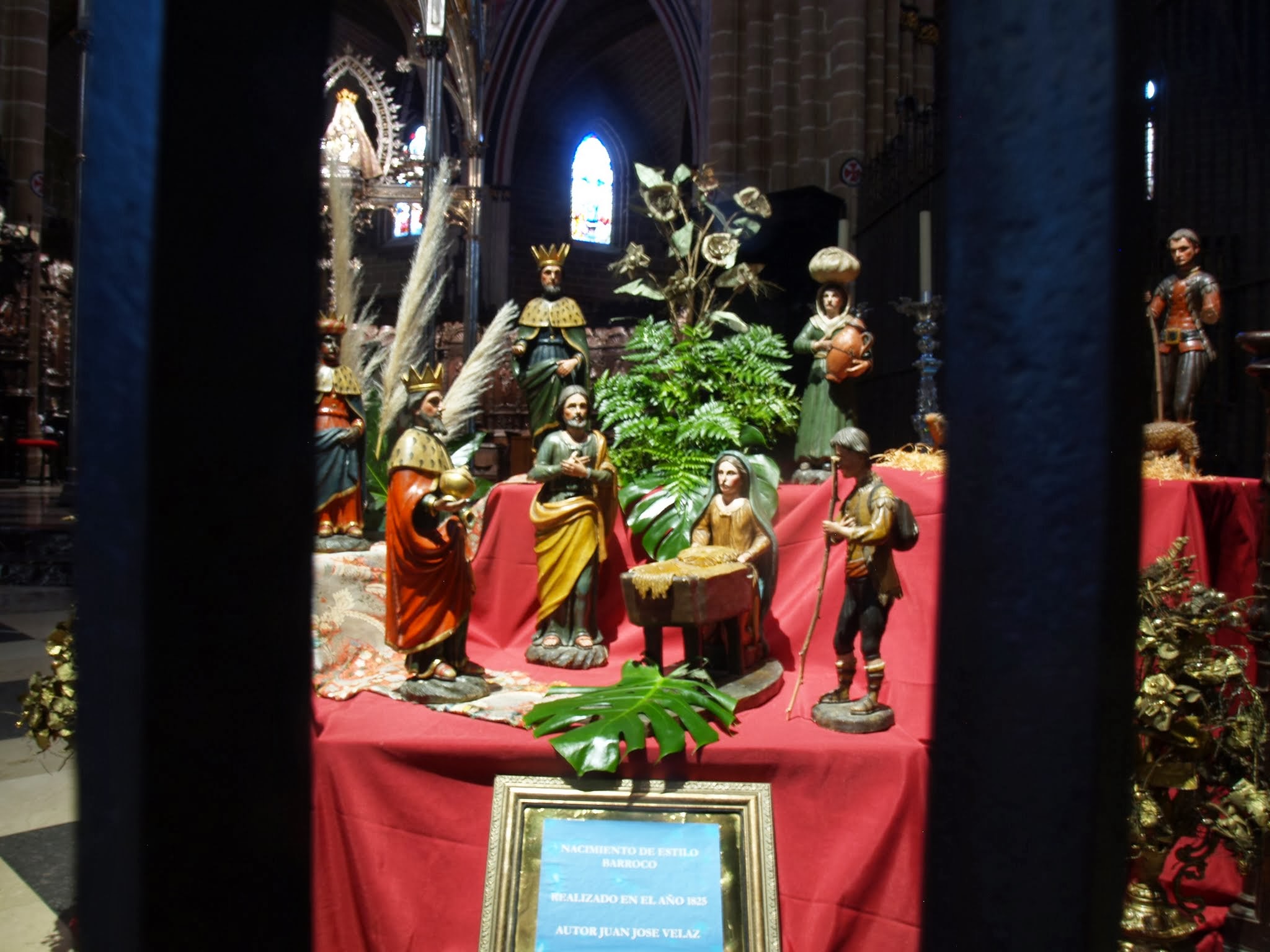 En el museo diocesano de Pamplona tenemos esta joya realizada con ingenuidad por un escultor no demasiado experto, pero que plasmó en estas figuras que a mí me parecen muy bonitas. Se expone en los últimos años en el presbiterio de la Catedral durante las Navidades. Pude verse mientras la catedral está abierta al culto -de 9:00 a 10:00 y de 19:00 a 20:00- También al realizar la visita museistica el resto del día al visitar la interesantísima exposición Occidens. Lo pongo pensando en el Gran Pirata para que consiga librarse del parche.