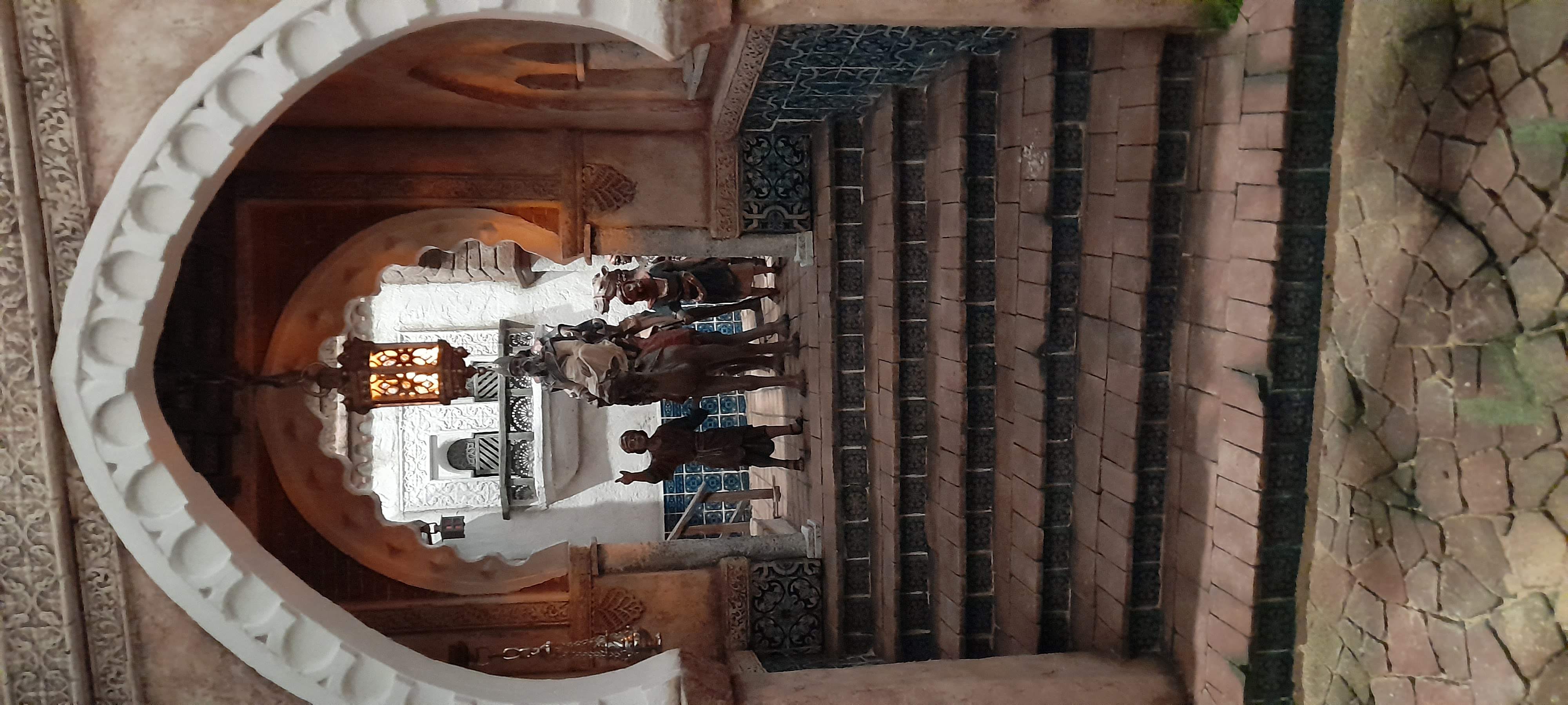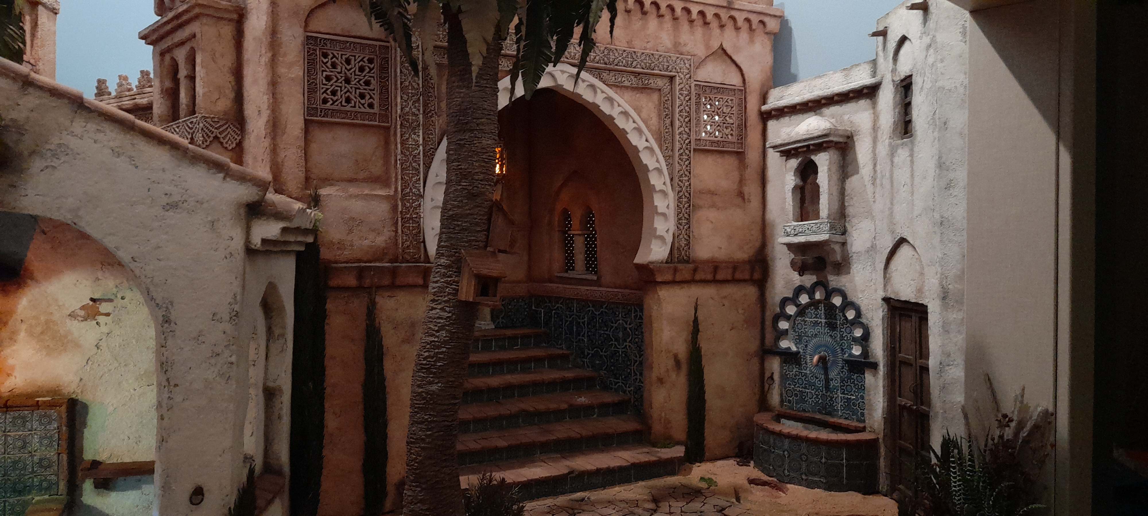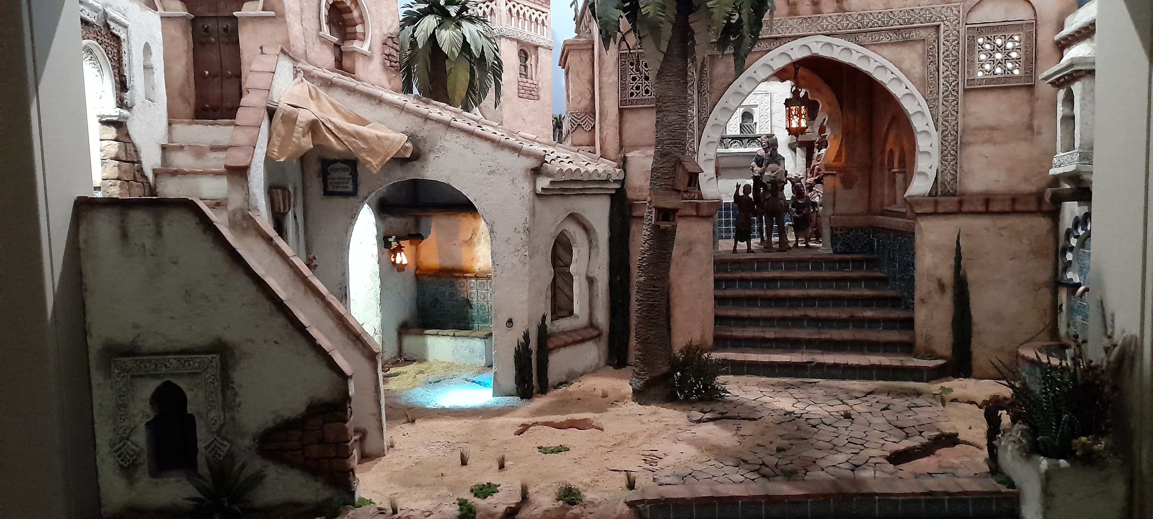 Por razones de espacio, como siempre, pongo a la venta el belén que he montado de este año en casa. Es para montarlo en cerrado tal cual se ve en las fotos. Para figuras de 20 cm en primer plano y 12 cm en el fondo. Las medidas son 123 cm de ancho por 100 de fondo. Por supuesto no incluye ningún tipo de figura ni complemento, ni tampoco las rosetas arabescas que el arco tiene a los lados, que se sustituirán por unos balconcitos o algo similar. Si incluye las palmeras. 360€ más gastos de envío. Ideal para alguna hermandad o institución. Contacto preferiblemente por WhatsApp o privado.