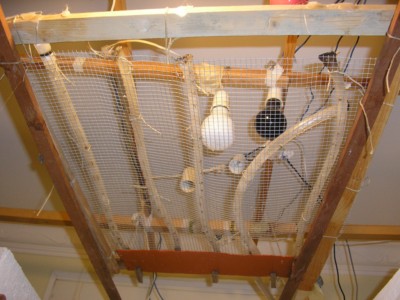 Yo puse las luces por encima del sistema de agua de esa forma queda fuera de peligro y la iluminacion es perfecta.Los cables aislados los pase por encima de las edificaciones .