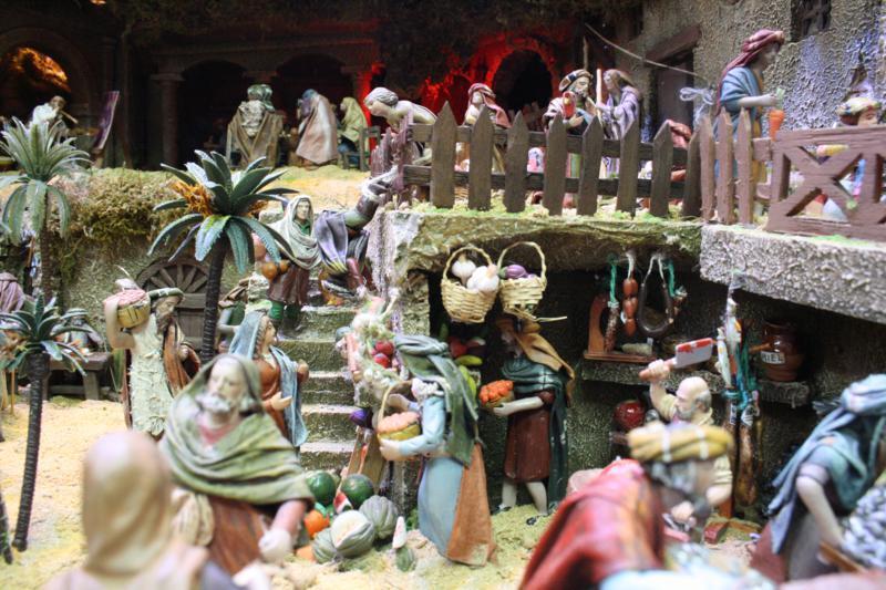 Os dejo dos fotos más con los dos edificios principales del belén, comparándolos con los edificios reales en los que me he basado. Por cierto, rectifico la entradilla: el palacio de Herodes está inspirado en la Iglesia de San Carlos Borromeo de Viena, no en la de San Pedro, perdón por el lapsus.