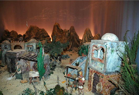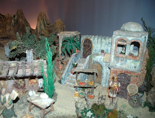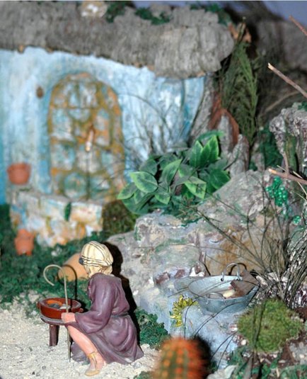 hasta ahora lo han visitado 180 personas, pero cada día aumenta la suma. el belen, de 5 m2 , cuenta con cantidad de detalles, como palomas, cestos de frutas ,una cometa, sacos, el puchero hirviendo, farolitos, una fuente , pequeños cantaros ,incluso este año me he atrevido con una acequia por donde corre agua.....