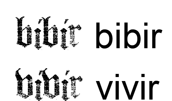 Es por el tipo de tipografía. Algunas personas pensarán que está escrito con b, pero realmente está escrito con v. Dejo con una imagen como es en cada caso, y rabito de la v, es torcido, mientras que el b es recto.