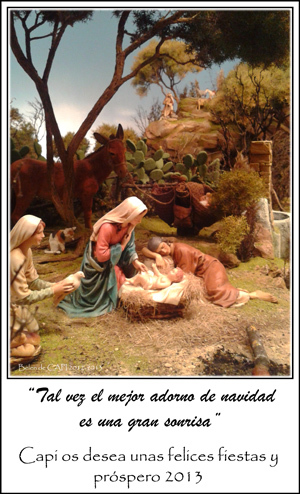 Buenos dias,ayer estube en casa de Capi con Jose(dos hermanas) no tengo palabras para contar lo que vi,fue una visita inexplicable,un belen espectacular exquisito, lleno con un sin fin de detalles,los bellos de punta con la presentacion del belen,una vegetacion perfecta,pero si bueno es el belen mas bueno es el autor como persona,gracias Capi por abrirnos las puertas de tu casa y tratarnos de esa manera y a Jose por llevarme a estos sitio maravilloso.Capi espero tu visita por Utrera.De nuevo te digo que ENHORABUENA!!!!!!! Un saludo desde Utrera.