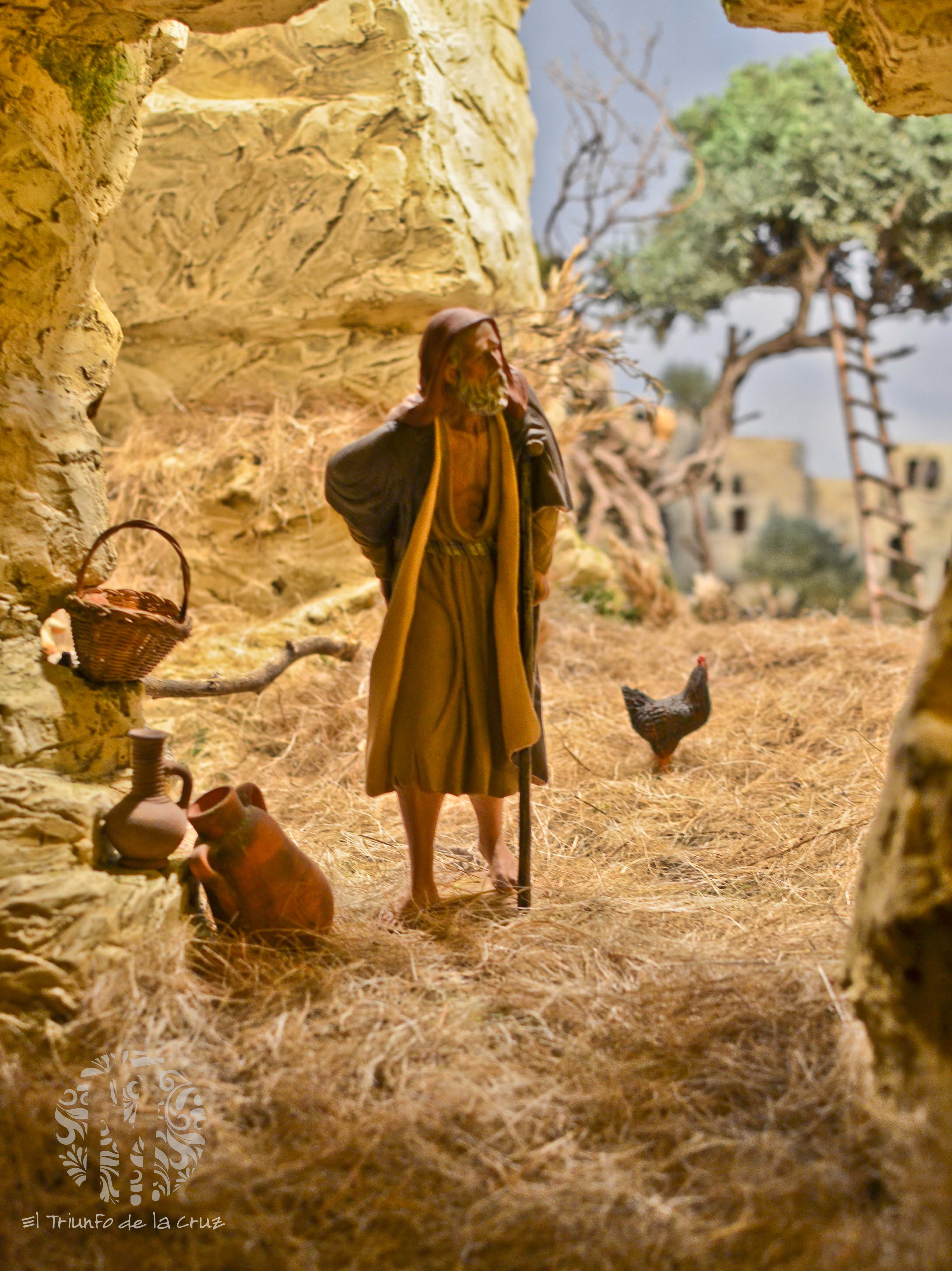 El montaje está realizado con figuras de los artesanos Arte Sacro Hermanos Cerrada, correspondiendo al primer plano las figuras de su colección de 28 cm, complementándose para los planos posteriores con figuras de 20 y 16 cm, también de los mismos artesanos.