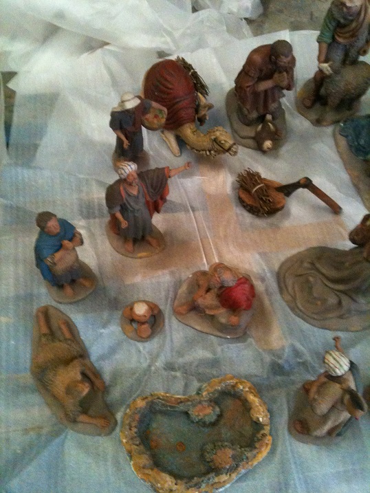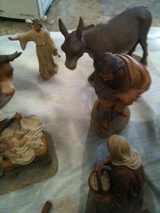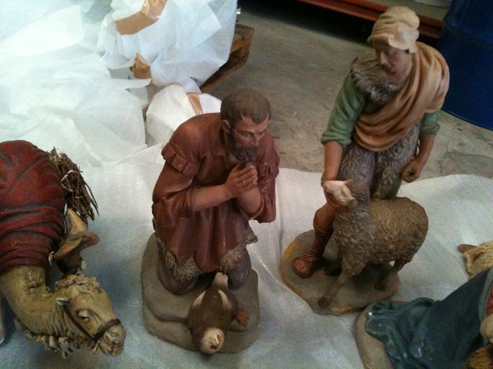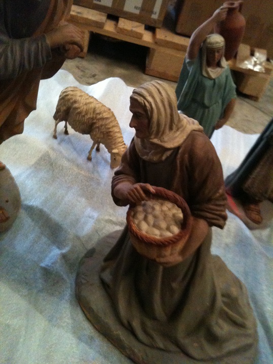 Bueno, hay muchas figuras y de tamaños variados, todo lo que veo Castells salvo un camello murciano que se asoma por un lado. Tienes el nacimiento de Murillo entero, o casi (no veo el pastor con la oveja a los hombros, pero no es muy relevante si tienes la místico, la señora de la cesta de huevos y el pastor con la cabra) y parece muy bien ejecutado, entre mil y mil quinientos, yo vendí una anunciata muy parecida por unos cuatrocientos, me parece, y hay que ver el resto... no sé, yo creo que el lote vendido barato son mil quinientos, vendido por su parte alta, dos mil quinientos... pero no creo que el mercado pueda asumir tanto dinero en una sola operación, yo partiría el lote en Murillo, Anunciata y el resto...