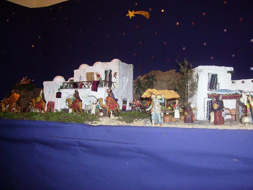 Hola, este es mi belen de este año, este es el segundo que hago de estas dimensiones (3m de largo por 1,25m de ancho), las mayorias de las figuras son de landi de 10cm aunque estoy incorporando nuevas figuras de barro con un total de una 50 figuras mas los animales. Las construcciones estan hachar por mi al igual que los utensilios. El belen tiene un rio con agua natural de 1 m de largo. Espero vustros comentarios y en mi albun estan el resto de las fotos. Muchas gracias.