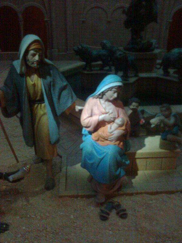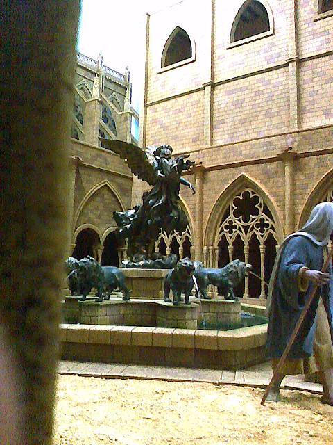 El belen esta inspirado en el claustro del monasterio de Poblet aunque con algunas cosas de mi creacion,como puede ser los adornos de la pared de la galeria izquierda.Los suelos tambien son de mi creacion.La parte trasera baja tambien es de Poblet aunque con un ligero retoque,pues en Poblet no hay arcos cerrados.La parte trasera alta es la fachada norte de la catedral de leon tambien con algunretoque de mi parte.Y la fuente es una libertad que me he tomado.