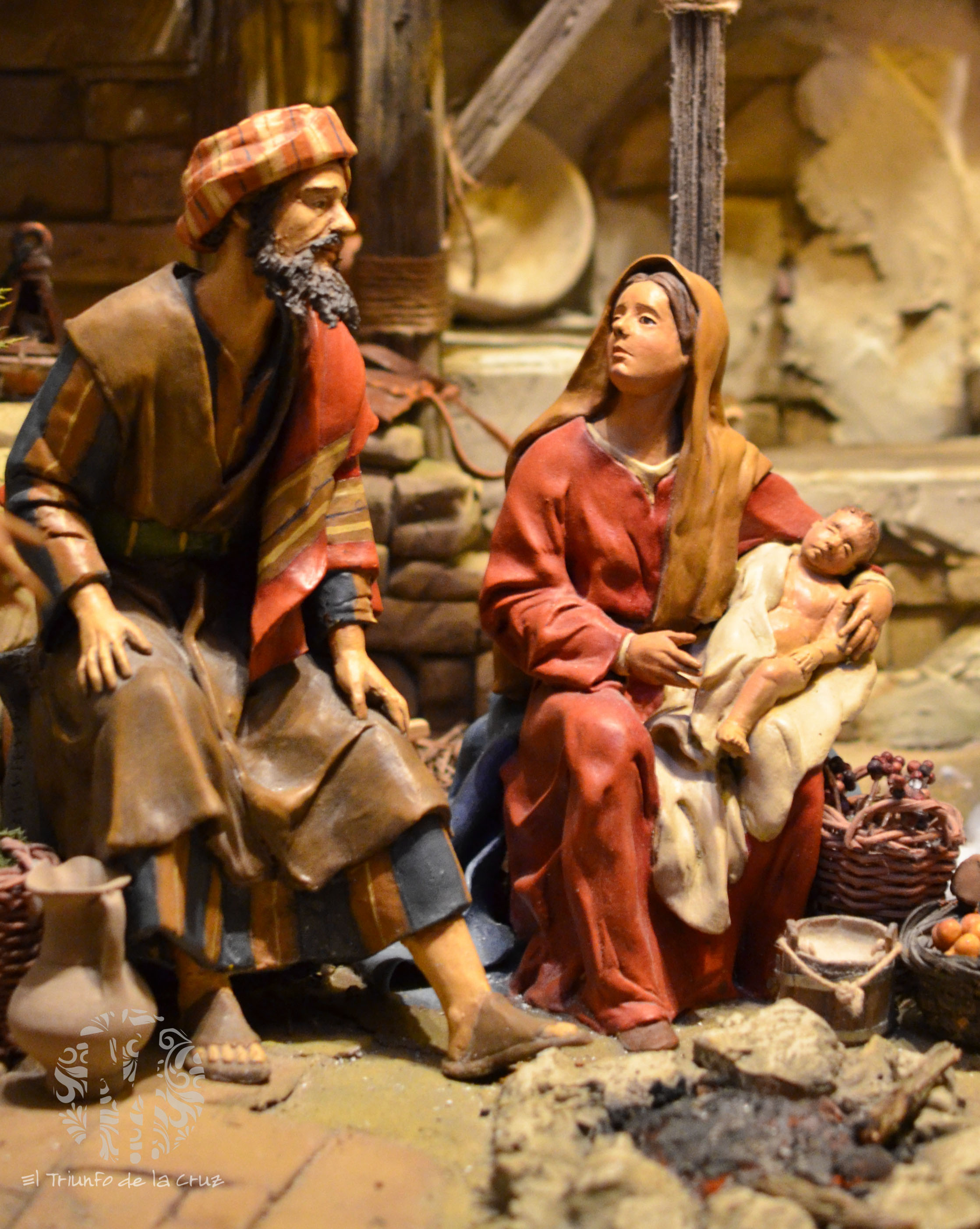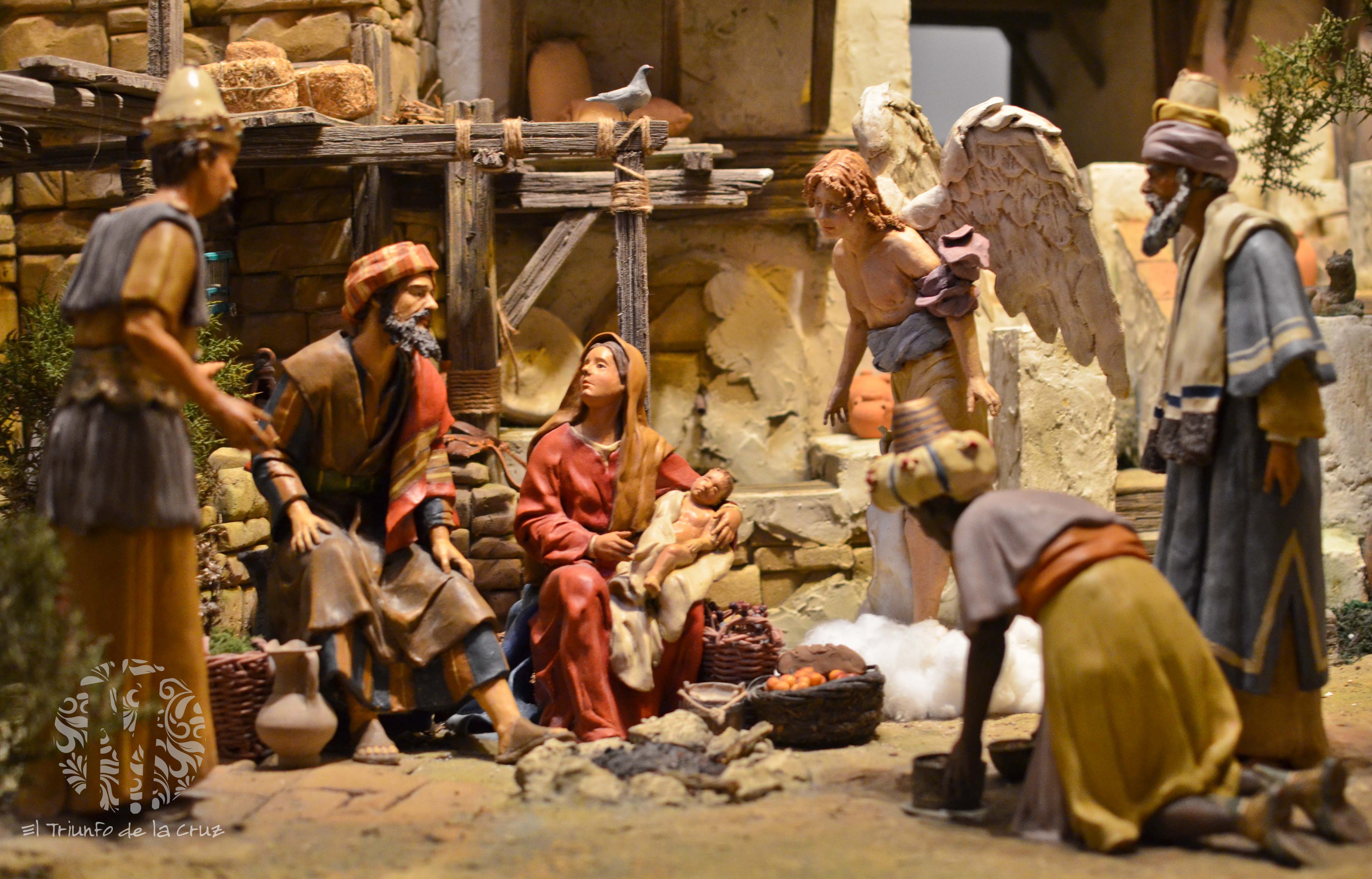 El extraordinario conjunto escultórico de la Sagrada Familia es obra de Manuel Sánchez Raposo, cedido para la ocasión por Andrés Quijano, y muestra a una dulce Virgen María que mira embelesada a San José, mientras sostiene en sus manos al Niño que está dormido, otorgándole a la escena una calidez fantástica.