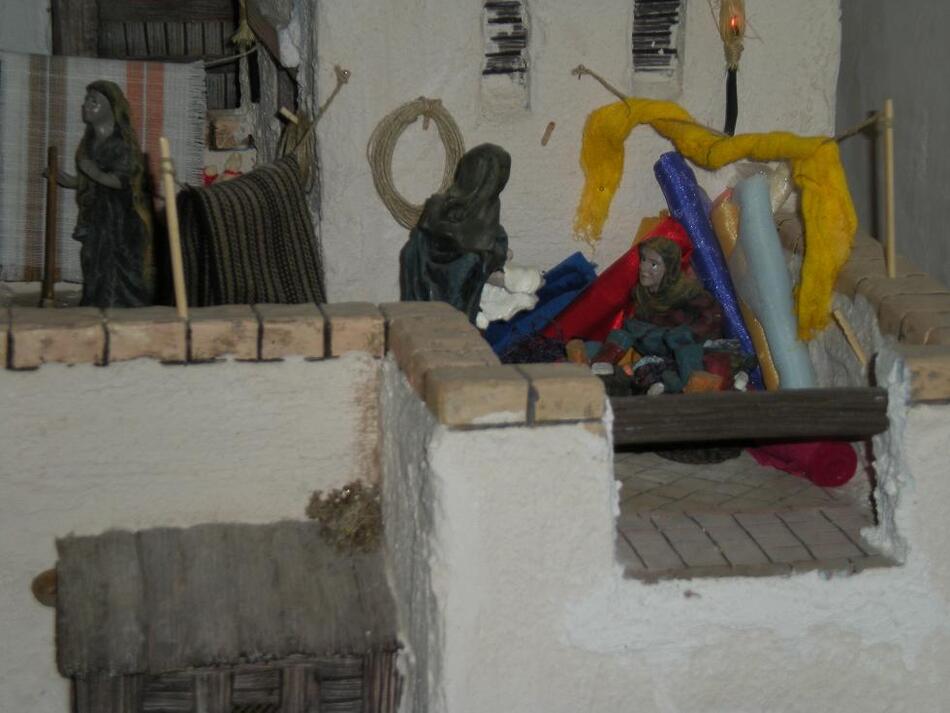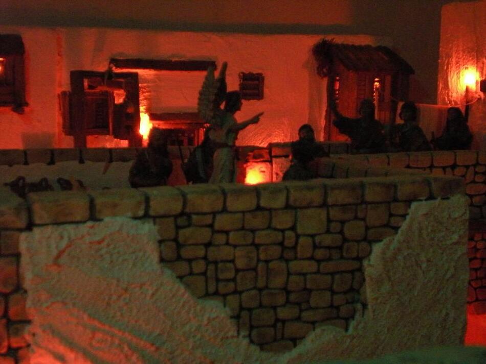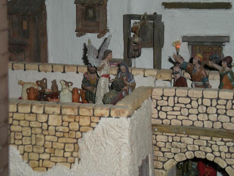 Fiestas: Me alegro de que te guste la escena del ángel. Quería hacer algo original, y en unprincipio lo iba a poner con los pastores dormidos del primer plano, pero luego pensé que sería una idea muy original ponerlo en la azotea de una de las casas en un segundo plano.
