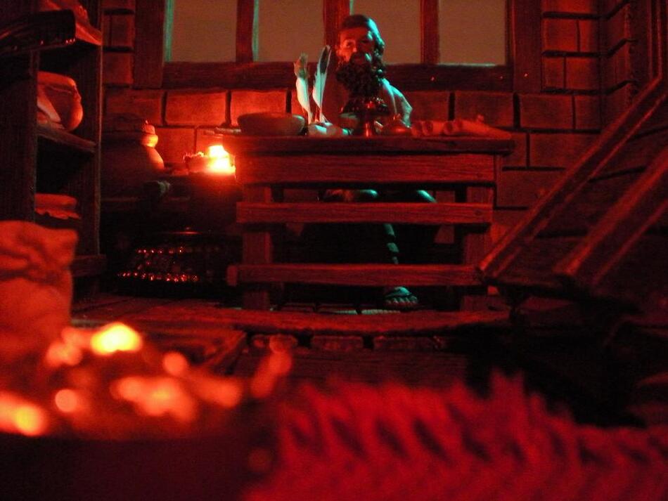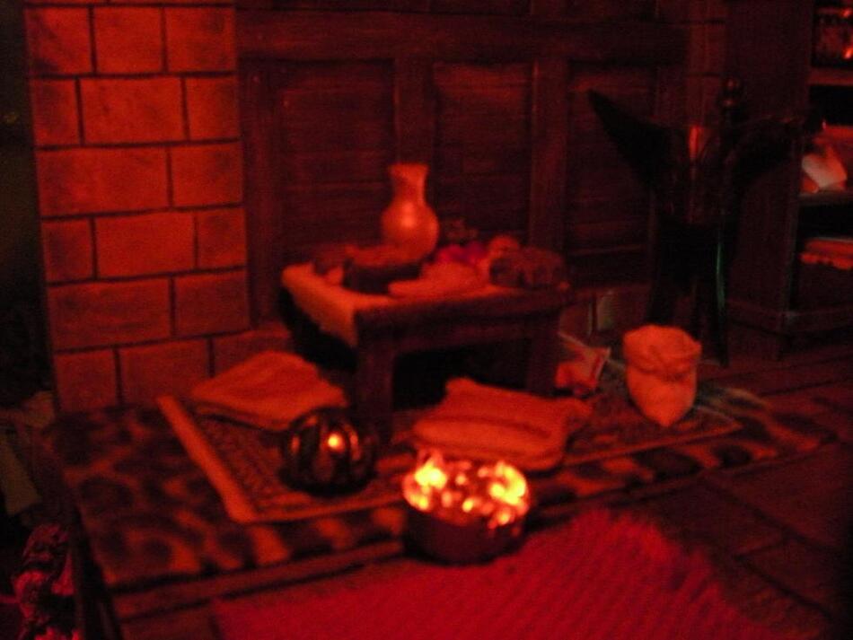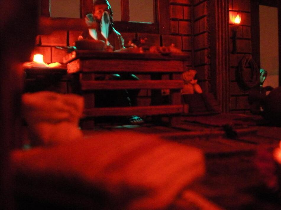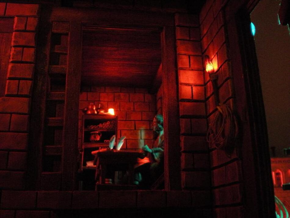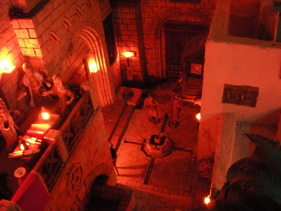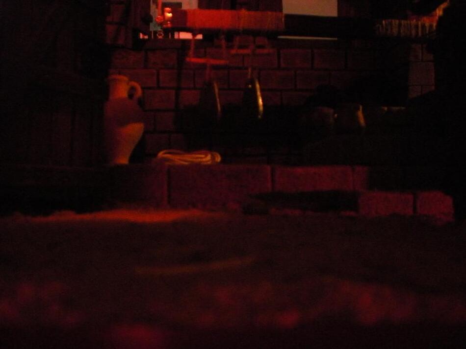 Y en respuesta a tu petición de más fotos, aquí tienes unas cuantas más. Empiezo por una del estudio del escriba, que he modificado un poco, cambiado de sitio la mesita y los cojines del primer plano, ponieno un farol encima de la mesita y otro en la mesa del escriba, y poniéndo luz al brasero de pie. Creo que ahora esta escena está mejor. Y continuo con fotos de la nueva construcción, del lienzo de muralla que me faltaba por construir. Ahora solo me falta pintarlo y terminar los últimos detalles, como un pequeño reloj de sol que quiero poner en la pared del frente, entre el farol y el balcón, pegado a la esquina de la calle donde está el pastor tirando del camello.