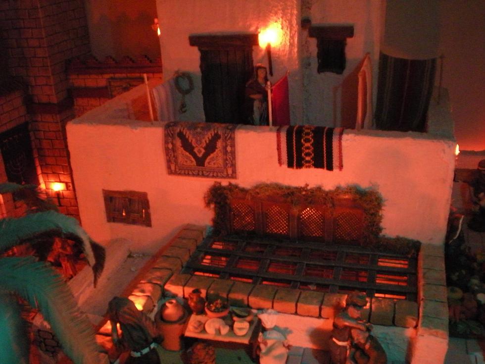 Fiestas: Me alegro de que te guste la escena del ángel. Quería hacer algo original, y en unprincipio lo iba a poner con los pastores dormidos del primer plano, pero luego pensé que sería una idea muy original ponerlo en la azotea de una de las casas en un segundo plano.