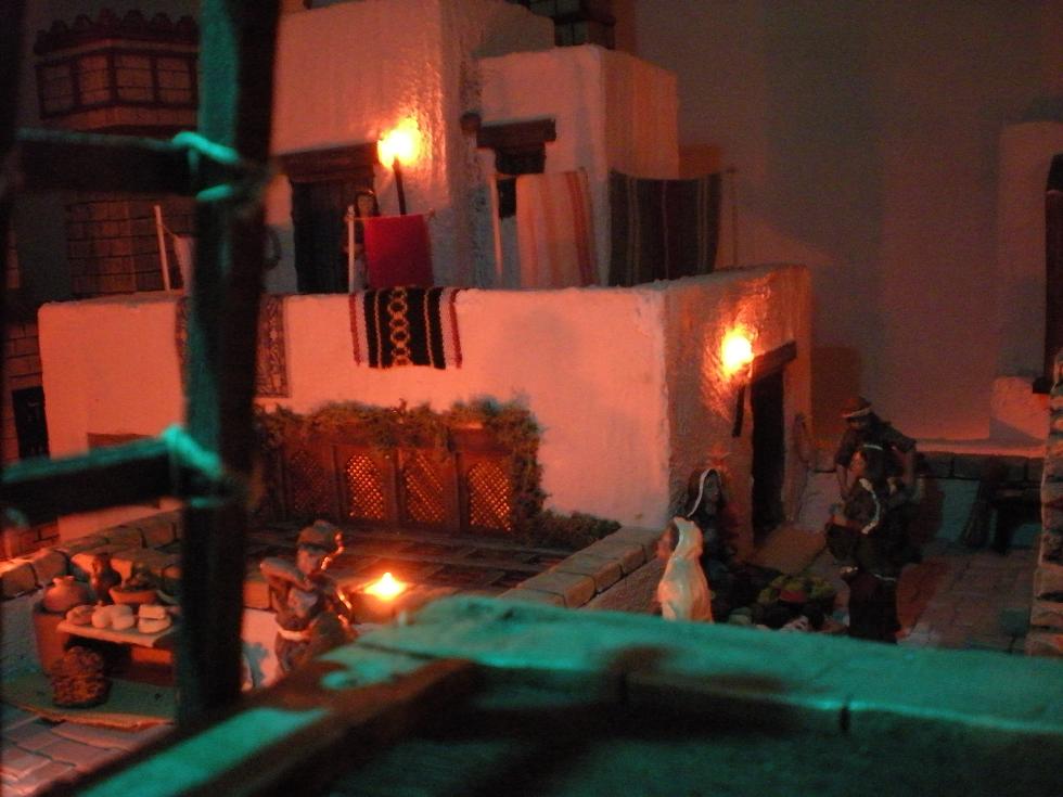 Fiestas: Me alegro de que te guste la escena del ángel. Quería hacer algo original, y en unprincipio lo iba a poner con los pastores dormidos del primer plano, pero luego pensé que sería una idea muy original ponerlo en la azotea de una de las casas en un segundo plano.