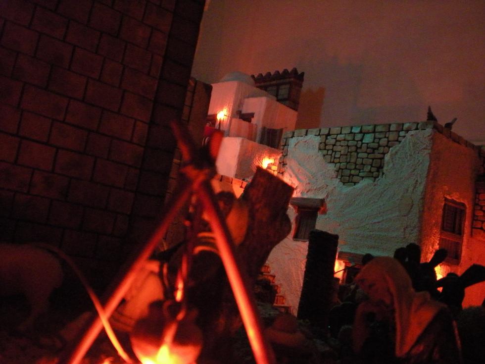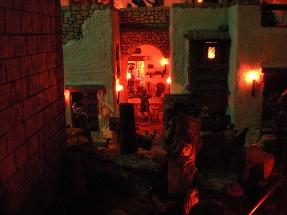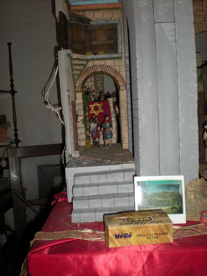 Marceastur, este es un proyecto que llevaba varios años queriendo hacer, y que sabía que para llevarlo a cabo me costaría un par de años. Las primeras casas, las hice para el belén de las navidades de 2008-2009, que son las de la parte trasera, las que tienen las azoteas, con la anunciación a los pastores, el puesto de verduras, el barbero y la vendedora de telas. La puerta, las torres y la fachada del templo, junto con las casas de la calle trasera, las hice al año siguiente, y este año ya hice toda la parte delantera, a excepción del trozo de muralla que no me dio tiempo a terminar. Y seguramente nunca lo daré por terminado, porque la intención es que cada año le vaya añadiendo algo nuevo.