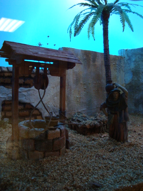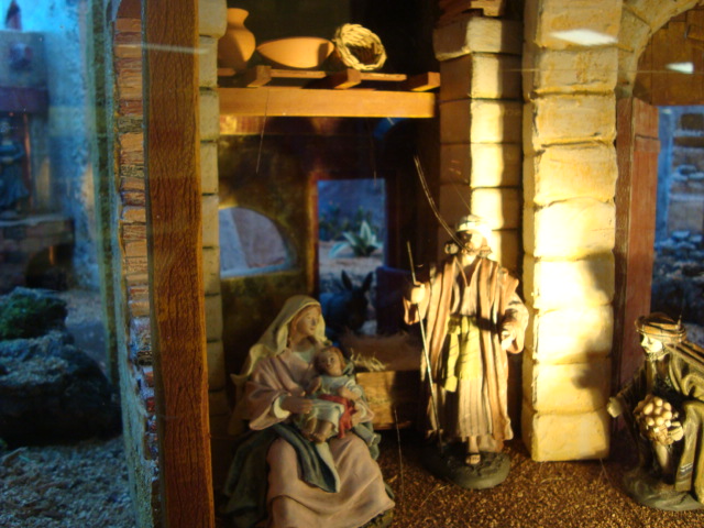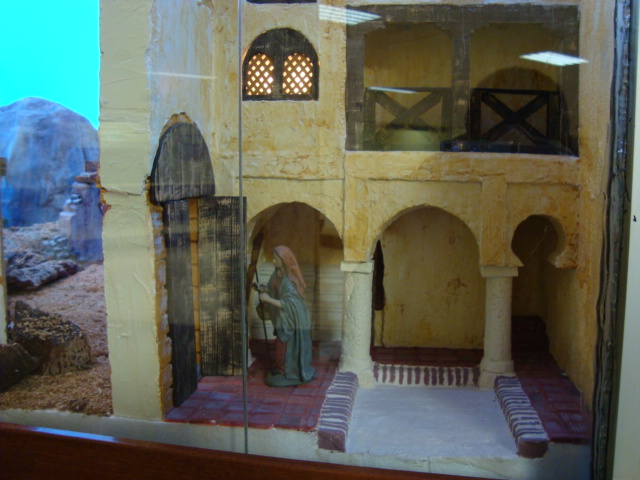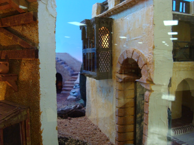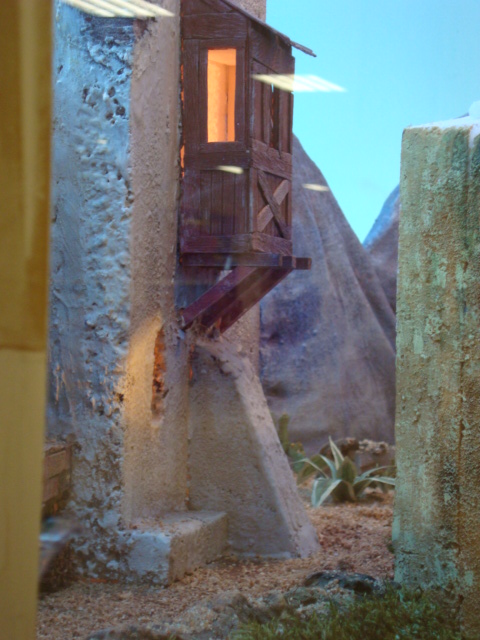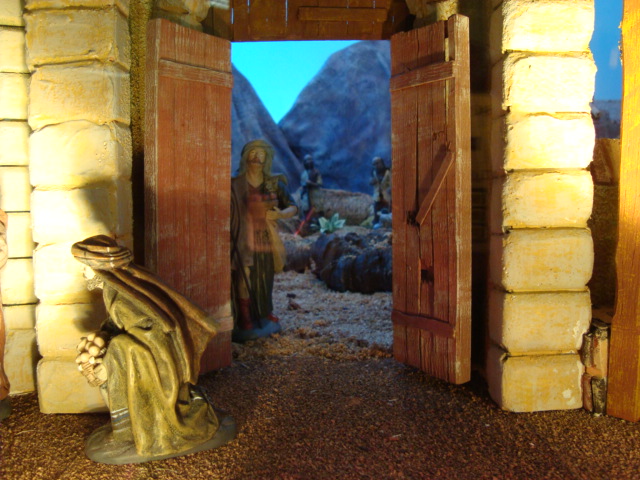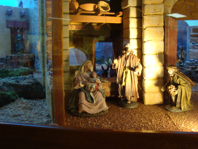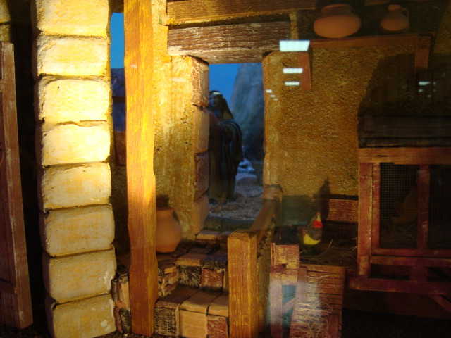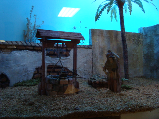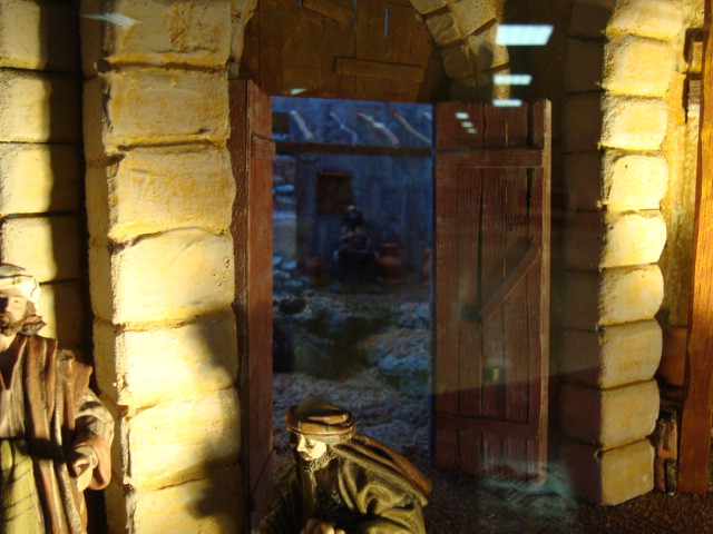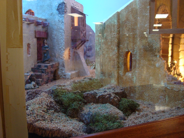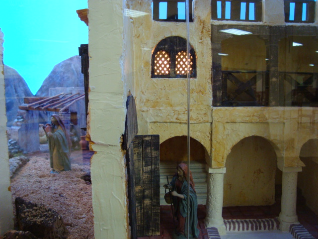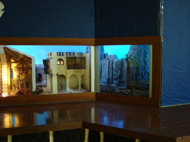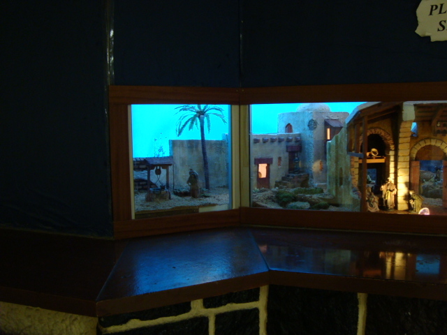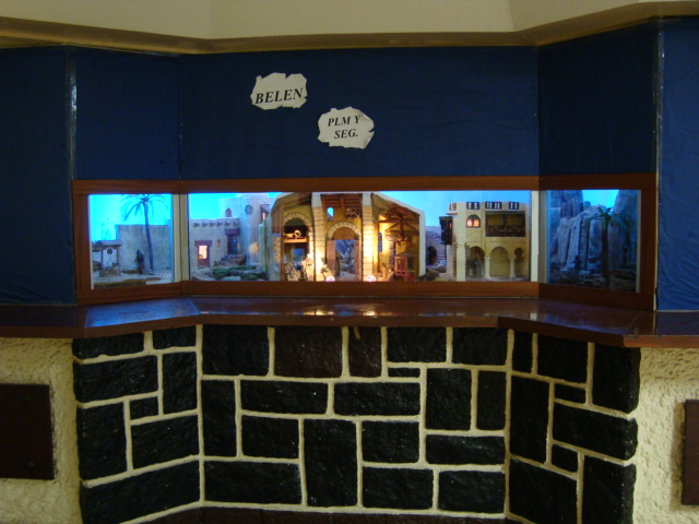 Este es el Belén que he montado este año en la cafeteria de mi centro de trabajo en Colmenar Viejo (Madrid). Lo hice con las construcciones que fuí copiando de la revista Taller de Belén. Se trata de un Belén cerrado de 3mts. de ancho x 1,50 mts de fondo. Las figuras de primer plano son de 16 cms, adquiridas en el mercadillo navideño de Madrid, otras de la firma Oliver y las del fondo son de los "chinos". ¡No había más presupuesto!. Espero que la empresa se anime y cada año vayamos adquiriendo algunas figuras más.