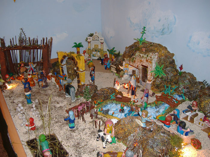 Manuel, tienes todo un artista en casa, felicitale por ese trabajo tan colorido y con tanta maestriaes un belen con mucho encanto. Saludos