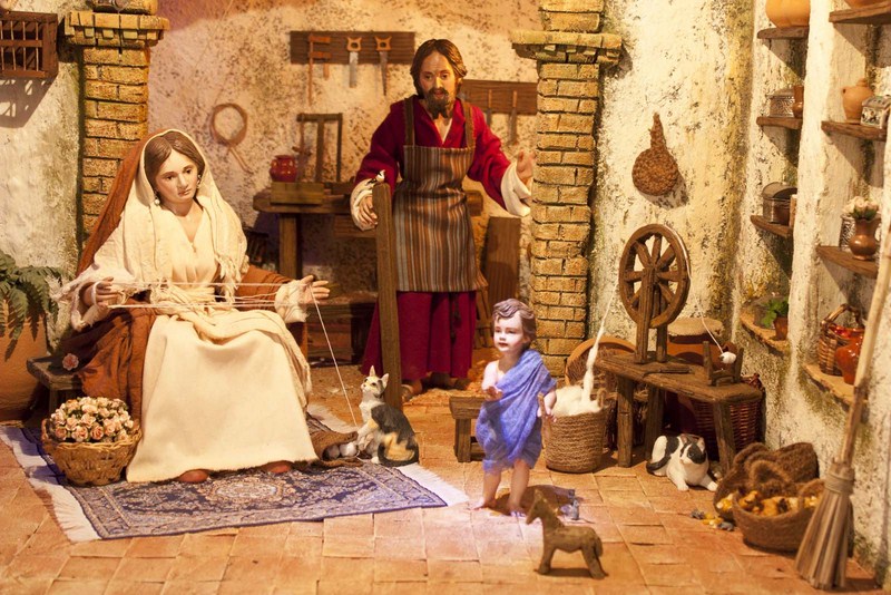 Belen instalado en casa para estas navidades, se presenta sobre una superfie de 7 metros cuadrados, en la que se representa una escena de la vida de jesus, que este año trata se la reprentacion de la sagrada familia en el taller labores y carpinteria de san jose, donde jesus dio sus primeros pasos para predicar el mensaje a la humanidad, los materiales que se han empleado para su construcion, porexpan, poliestireno, pinturas, escayola...etc, las figuras son de la escuela sevillana,de los artesanos pepe rioja y luis lagares, como ya he explicado en otras ocasiones y podeis ver en el apartado del foro de figuristas andaluces.