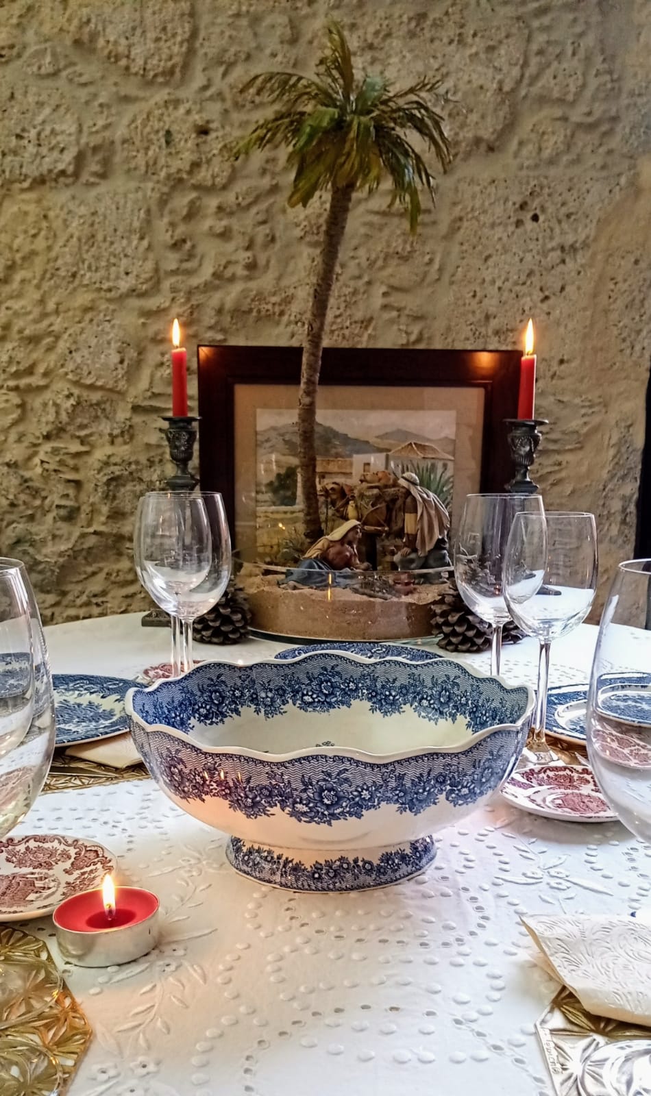 A punto de celebrar la Nochebuena!, todo preparado y con el belén presidiendo la mesa!.