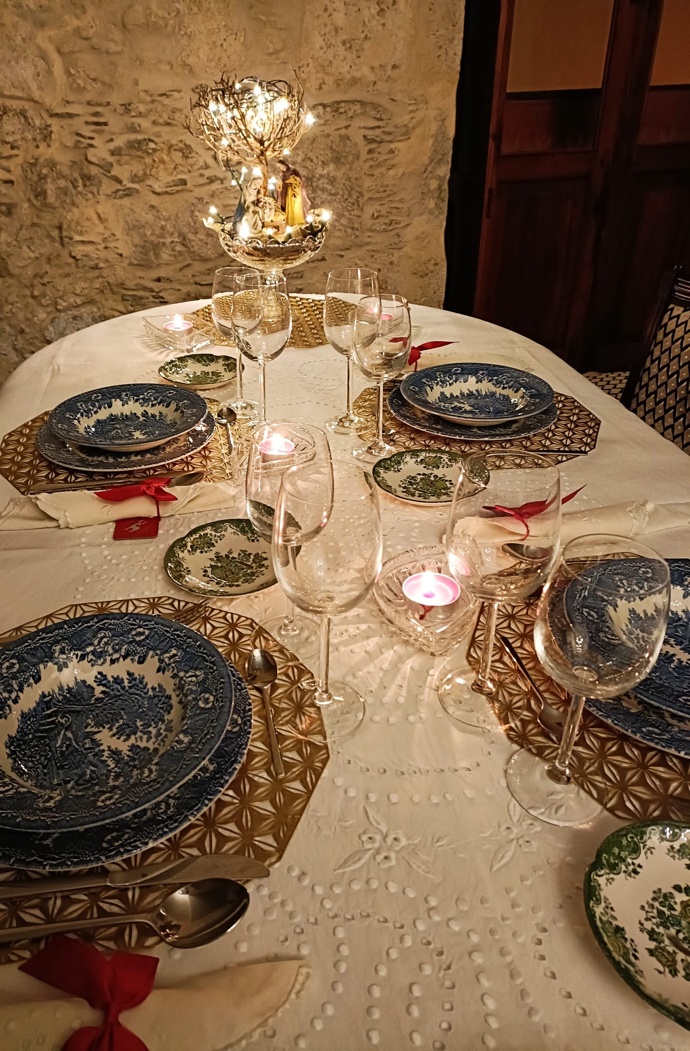 Conjunto de "aquellas pequeñas cosas" que hacen diferente lo profano de los días... también aquí la materia y la forma (como narro en la última entrada del Belén Malkior 2022 ) hacen que la vida celeste, llene de espíritu y luz, la mesa de Nochevieja...