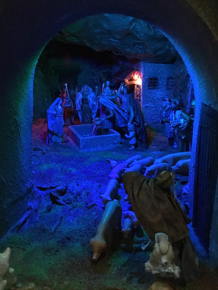 Fabuloso Belén!, que tamaño y figuras tiene? y sobre todo increibles edificaciones, que cambias cada año con el tema del Nacimiento...me gustan los rincones y recovecos, enhorabuena!.