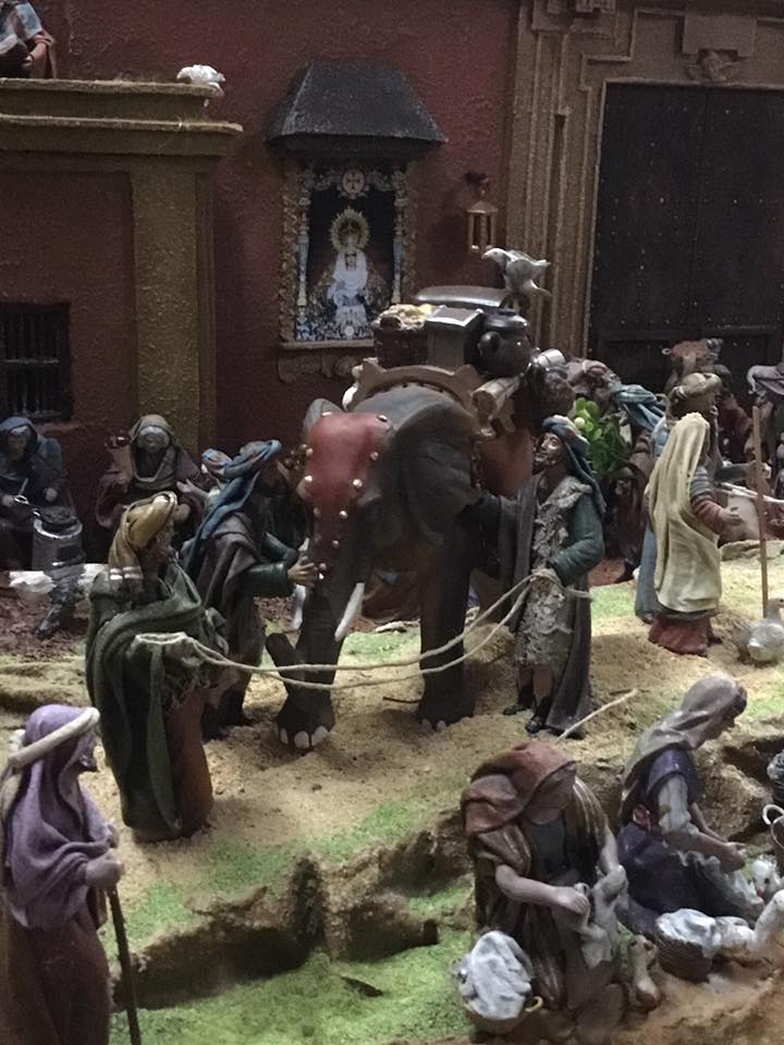 Un año más, os muestro el belén que he montado en mi casa, en Huelva, para esta Navidad. Como siempre, el belén está dedicado a un tema específico: este año, al Señor del Gran Poder, por lo que las principales construcciones se inspiran en edificios emblemáticos de Sevilla. El edificio central, donde se ubica el pesebre, es una recreación de la Parroquia de San Lorenzo y la anexa Basílica de Jesús del Gran Poder. Otro de los edificios que he recreado es la fachada principal de la Parroquia de San Martín, representando un taller de imaginería, al ser la iglesia donde se encuentra enterrado Juan de Mesa, autor del Señor de Sevilla. También podéis ver un Palacio de Herodes inspirado en la Puerta del León de los Reales Alcázares, un gran arco basado en la desaparecida Puerta de San Fernando y una fuente imitando la también desaparecida Fuente de La Macarena.