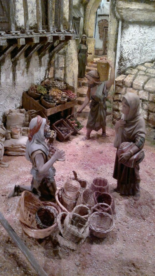 Un belén muy muy real. Me han gustado mucho los puestos de fruta, pescado, etc.... ¿Todas las figuras son de Mayo?. ¿Qué altura tienen?. Enhorabuena por el trabajo.