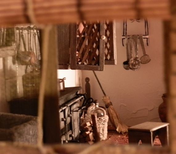 Es una obra de 24 m2 (8 de largo por 3 de fondo). Ambientado en Tierra de Campos de Castilla (Valladolid). El castillo es una réplica de la torre del homenaje del de Fuensaldaña, y la iglesia de la de Wamba, ambas localidades de Valladolid. Las edificaciones con las habituales en la zona.