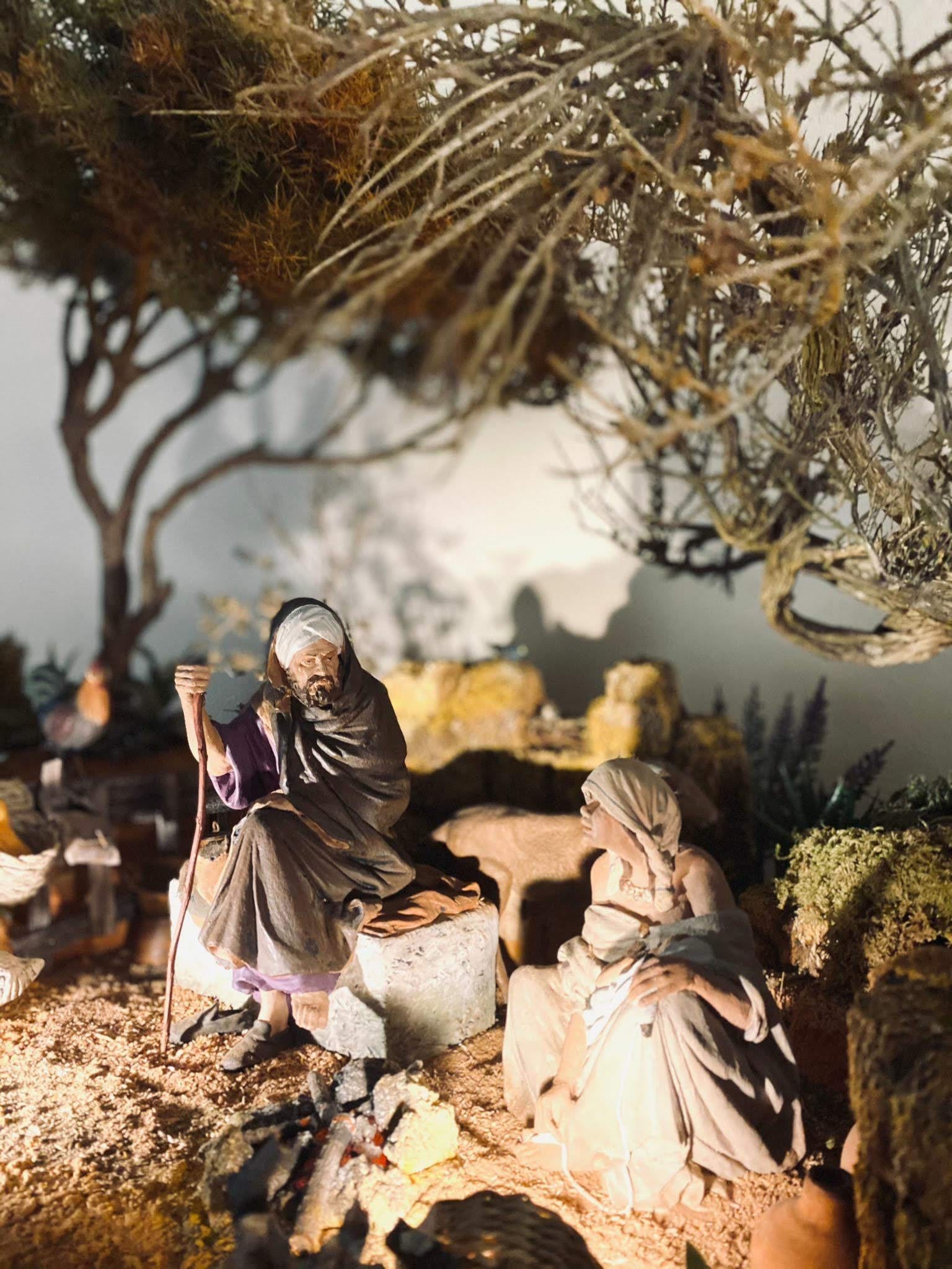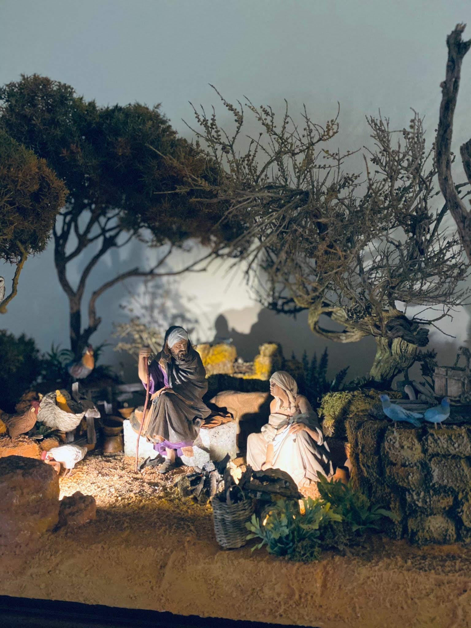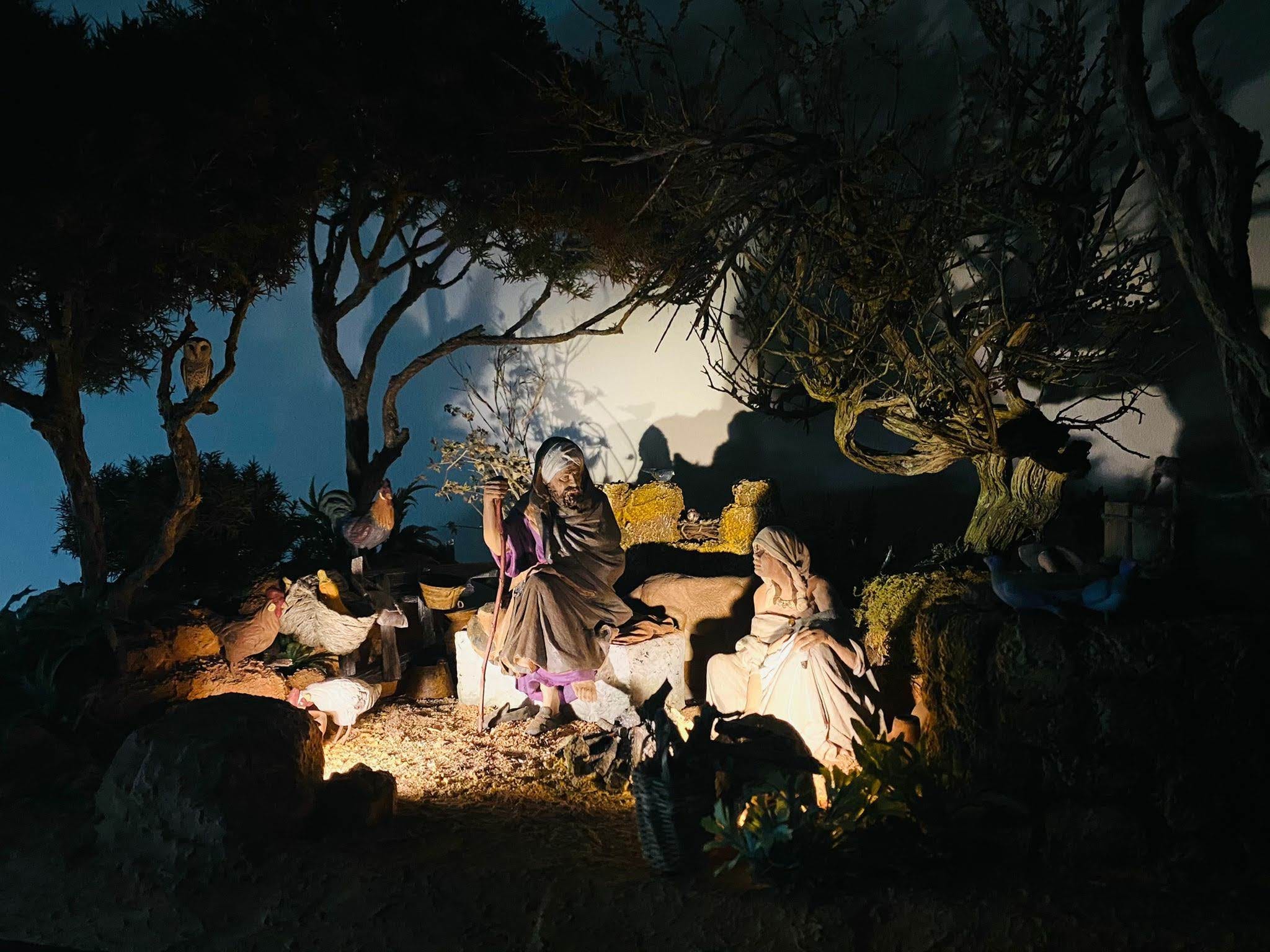 Según comentas, será un Belén pequeño en tamaño, pero te aseguro que grande en sensaciones para lo que visualizamos estas fotografías. Aquí vemos a José ,a María y a Jesús recién nacido, rodeado de árboles, plantas y animales, porque el Belén es también esto, naturaleza y la propia vida. Preciosas las figuras y la iluminación que las acompaña.