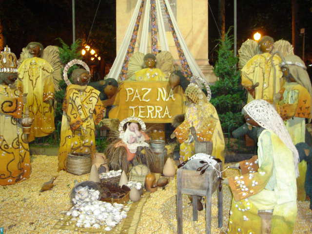 Aquí tienes un belén brasileño realizado con material reciclado de espiga de Milho (maíz) o algo parecido
