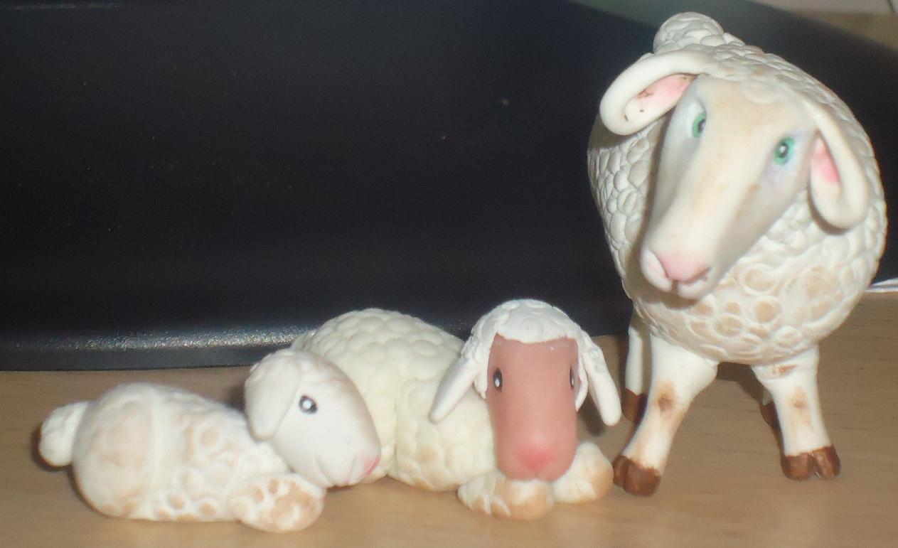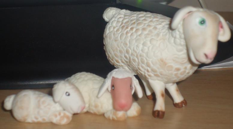 !ay que pena!! estas no son "basurilla" tendré que esperar un poco más, jajaja. TE han quedado geniales, los corderito lindísimos y la mamá oveja sensacional de color, postura y esos ojitos lindos, chan, chan, que me enamorannnnnnnnn, como dice la canción, bueno tú no la conoces porque eres muy joven, era del Duo Dinámico, jajaa. en serio, realmente muy buenas, eres una verdadera experta en porcelana, haces bien todo lo que te propones con ella.