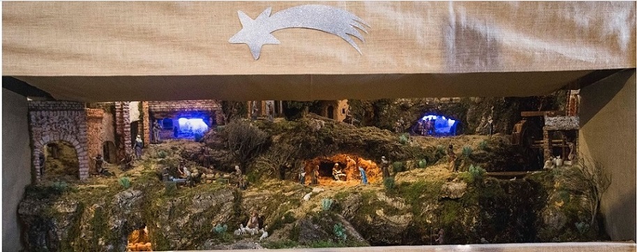 Se trata de un belén muy especial, en el que se combinan la construcción tradicional, a base de corcho y musgo cuidadosamente tratados, con espectaculares efectos de reflexiones múltiples en espejos, logrando unas sorprendentes perspectivas y lejanías. Hay que verlo para darse cuenta de lo que es, pues las fotos no permiten darse cuenta de las distancias de las lejanías.