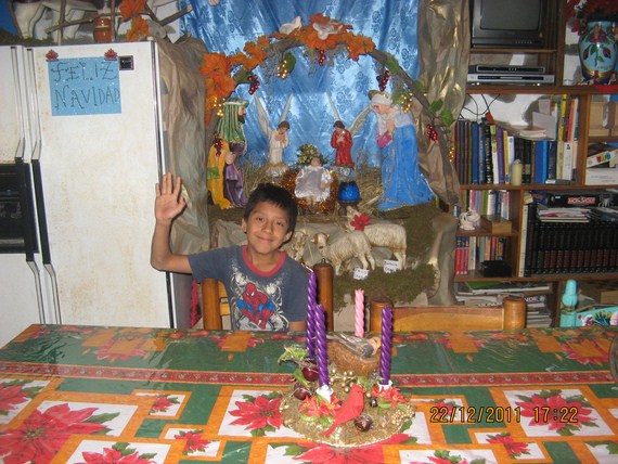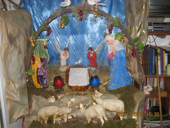 Móni muchas gracias, jajajaja cierto estamos todos adorando al Niñito Dios, fíjate que cuando estudiaba en el colegio, las monjas ponían un hermoso nacimiento en uno de los corredores, con un enorme rebaño, cada ovejita llevaba una bandita con el nombre de una alumna y día a día las movía la madre sor Enriqueta (nuestra encargada de secundaria) según lo bien portadas se acercaba la ovejita al portal y algunas las muy educaditas, piadosas y estudiosas finalizaban a los pies del pesebre del Niñito Dios y al revés si eras floja, impuntual, incumplida etc. la ovejita se rezagaba. Desde que nacieron mis niños nosotros lo hacemos en casa, con este nacimiento, el belén del corredor es imposible. Besitos.