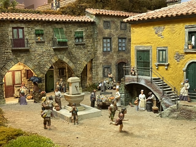 Aunque casi cerca de la Candelera (como dice Felorz) os muestro las escenas nuevas, bueno, este año más bien remodeladas de nuestro belén. Este año más que añadir escenas , junto con mi padre, que es el que realiza los muebles i los edificios principales del belén, hemos remodelado algunos edificios i rehabilitado algunas escenas que no estaban muy visibles y a las que he añadido figuras nuevas. Una escena nueva es la del empadronamiento que está recreado sobre la reproducción del antiguo ayuntamiento de mi pueblo, en la sala de plenos ( destruida durante la guerra civil) reproducida según la recordaba un un vecino de Arbeca , amigo de la familia, que tiene ahora 98 años y que nos ha ido describiendo poco a poco la sala y los muebles así como estaban distribuidos. Yo me he permitido alguna licencia como poner los dos cuadros, uno con un dibujo de Beaulieu del siglo XVII ,de Arbeca con el castillo y otro con los planos de la misma época y en los que se basó mi padre hace años para realizar la maqueta del castillo que también está incorporado al belén. En los bajos del edificio del ayuntamiento está reproducida la entrada de una antigua casa de Arbeca, desaparecida hace uno años y en la que está la escena del sueño de San José, con figuras de los Hermanos Castells . En fin , el resto son detalles añadidos a las escenas que ya habéis visto otros años, como la parada de castañas de la Castañera de los Hermanos Cerrada, un puesto de embutidos y quesos de estilo italiano para una figura de de Francesco, los angelitos que acompañan al niño Jesús que duerme de Montserrat Ribes, la mujer del paraguas, tambien de Montserrat Ribes y la escena de la visitación de Belenes Tula