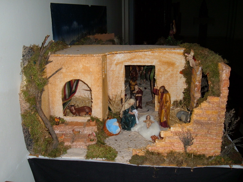 Os cuento algo más sobre este belén. Resulta que el misterio, la anunciación a los pastores y los reyes tienen ya alrededor de 37 años, y se compraron con lo que se recaudó despues de la representación de un belén viviente. Esta información me la ha facilitado uno de mis colaboradores quien además, ayudó a comprar las figuras.