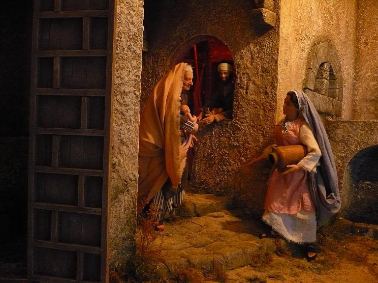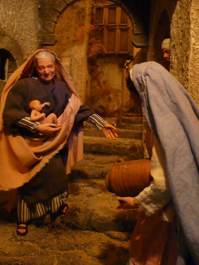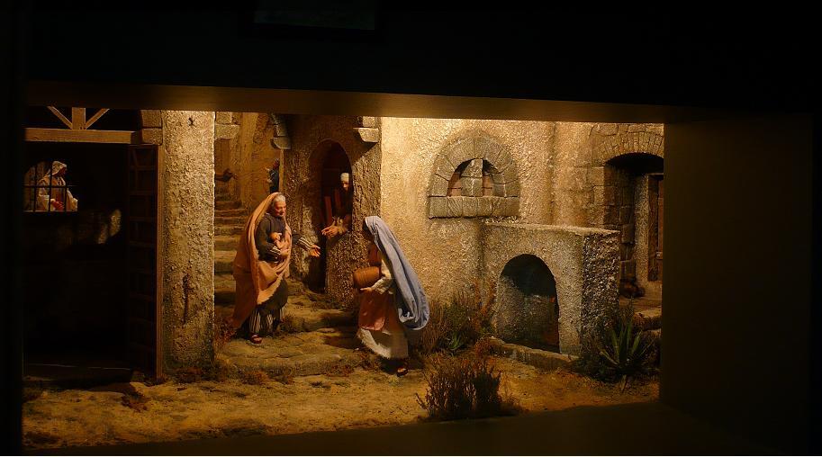 A petición de algunos foreros os pongo algunas fotos más...y bueno,las figuras las he hecho yo, intento representar la ayuda de la Virgen María a una anciana a ir por agua,que en este caso es mi abuela mientras porta el Niño recien nacido,mientras San José lo observa todo desde la carpintería.Las figuras son de 42cm ,trabajadas con la técnica napolitana y otras técnicas algo más vanguardistas como el pelo natural y el tratamiento de la piel.Un saludo.