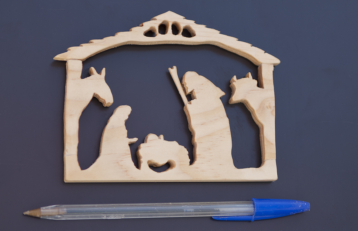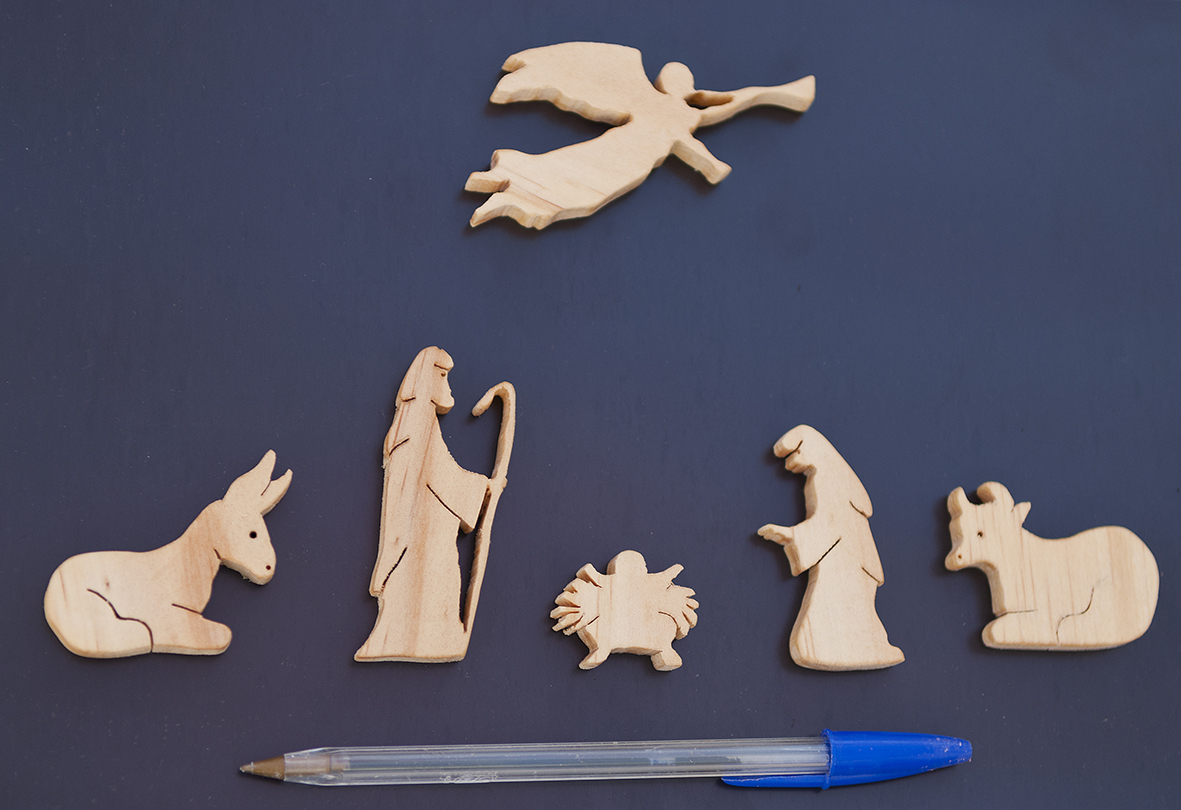 Belén magnético para nevera, hecho en madera natural.