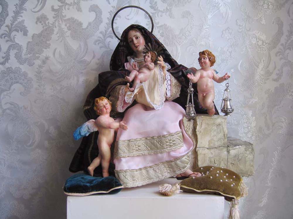 Segundo contestar en particuar a mzambrano; La figuras napolitanas se caracterizan por elementos diferentes, estopa, (alambre envuelto con estopa), brazos con mano, piernas con pies, estan puede ser o bien de barro o bien de madera, todo ensamblado y vestido resulta una figura Napolitana. Por mi parte en los dos viajes que he hecho a Napones he comprado los elementos( estopas , cabezas y manos) y aqui las he vestidos, eso si la mayoria de las cabezas o bien las he policromado yo o bien las he retocado, porque alli las hacen en serie y todas parecen iguales, a mi me gusta darle la policromia ( ya que es mi oficio y pasión , soy pintor), despues las visto como ya os he dicho y resulta lo que habeis visto en las fotos.