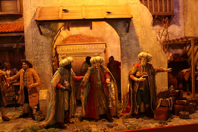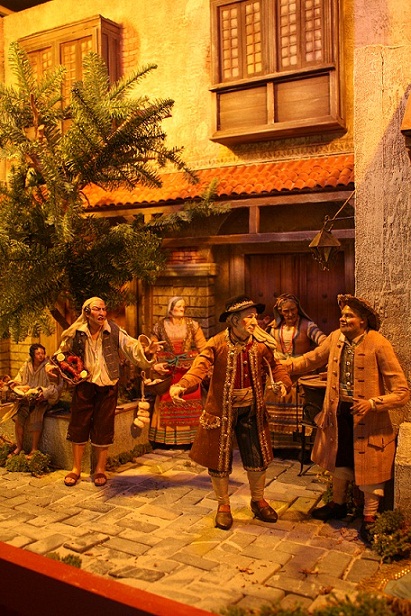 Elegante Belén napolitano, enhorabuena, la escena esta muy conseguida y las figuras son magníficas; ¿las haces tu o las compras? y ¿las vistes tu o alguien cercano?.
