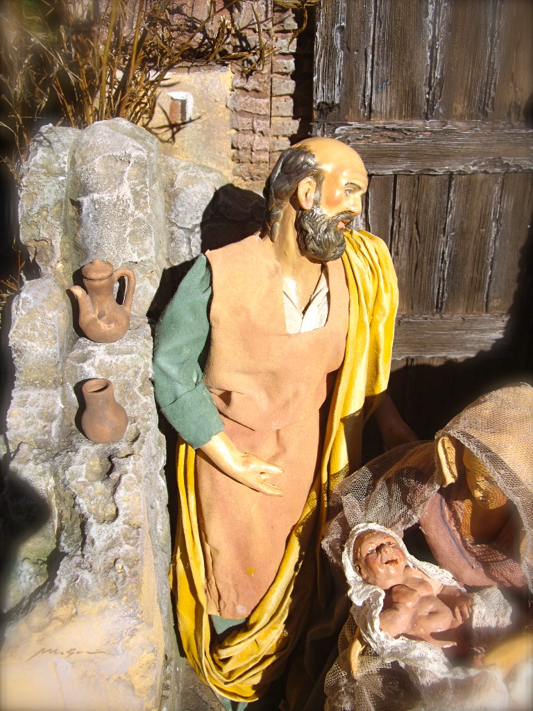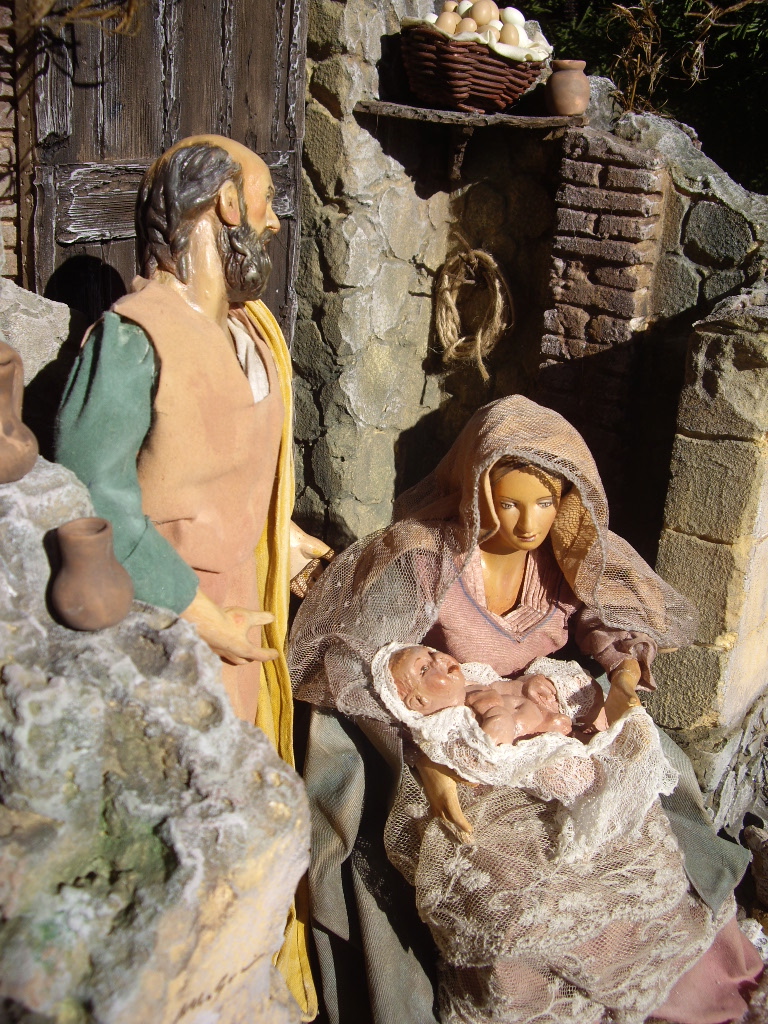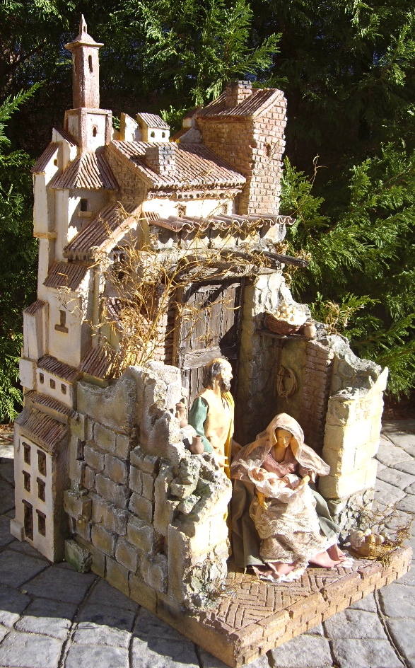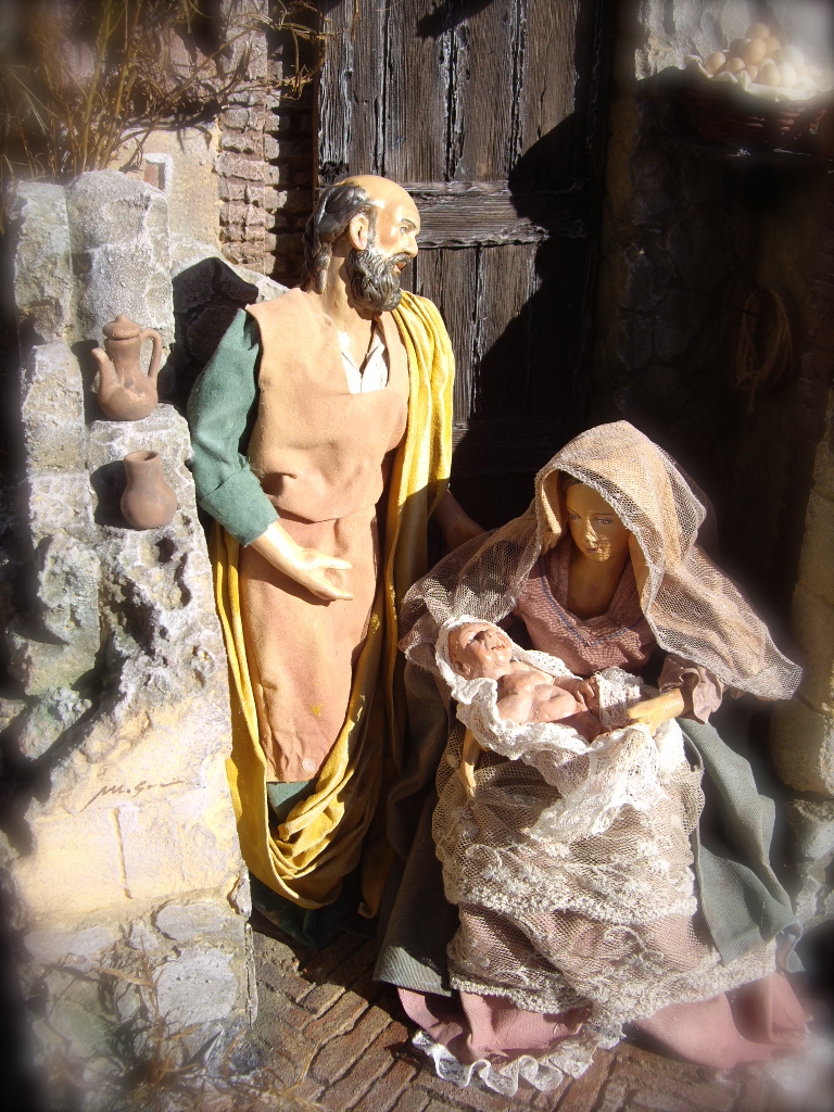 ...Entiendo lo que quieres decir, pero todo tiene una explicación, ese belén es para alguien en concreto, alguien que tiene que quitar y poner el belén de un golpe,porque no se va a preocupar de instalarlo, con lo cual es de una pieza. El portal es el portal de su casa, y lo mas pequeño en proporción, va disminuyendo, es lo que se vería detrás, reconocible solo la torre de la Iglesia de S. Pedro, no se busca que sea una perspectiva real, sino una identificación del lugar, pero, en un misterio de una sola pieza. No sé explicarlo muy bien... La vista buena es de frente, las casas laterales es una manera de rematarlo... pero visto de lado... es raro. Gracias por tu comentario.