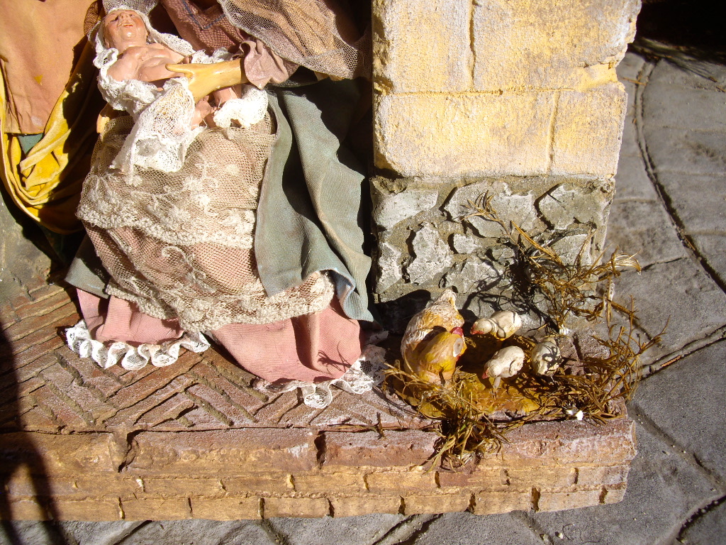 ...Entiendo lo que quieres decir, pero todo tiene una explicación, ese belén es para alguien en concreto, alguien que tiene que quitar y poner el belén de un golpe,porque no se va a preocupar de instalarlo, con lo cual es de una pieza. El portal es el portal de su casa, y lo mas pequeño en proporción, va disminuyendo, es lo que se vería detrás, reconocible solo la torre de la Iglesia de S. Pedro, no se busca que sea una perspectiva real, sino una identificación del lugar, pero, en un misterio de una sola pieza. No sé explicarlo muy bien... La vista buena es de frente, las casas laterales es una manera de rematarlo... pero visto de lado... es raro. Gracias por tu comentario.