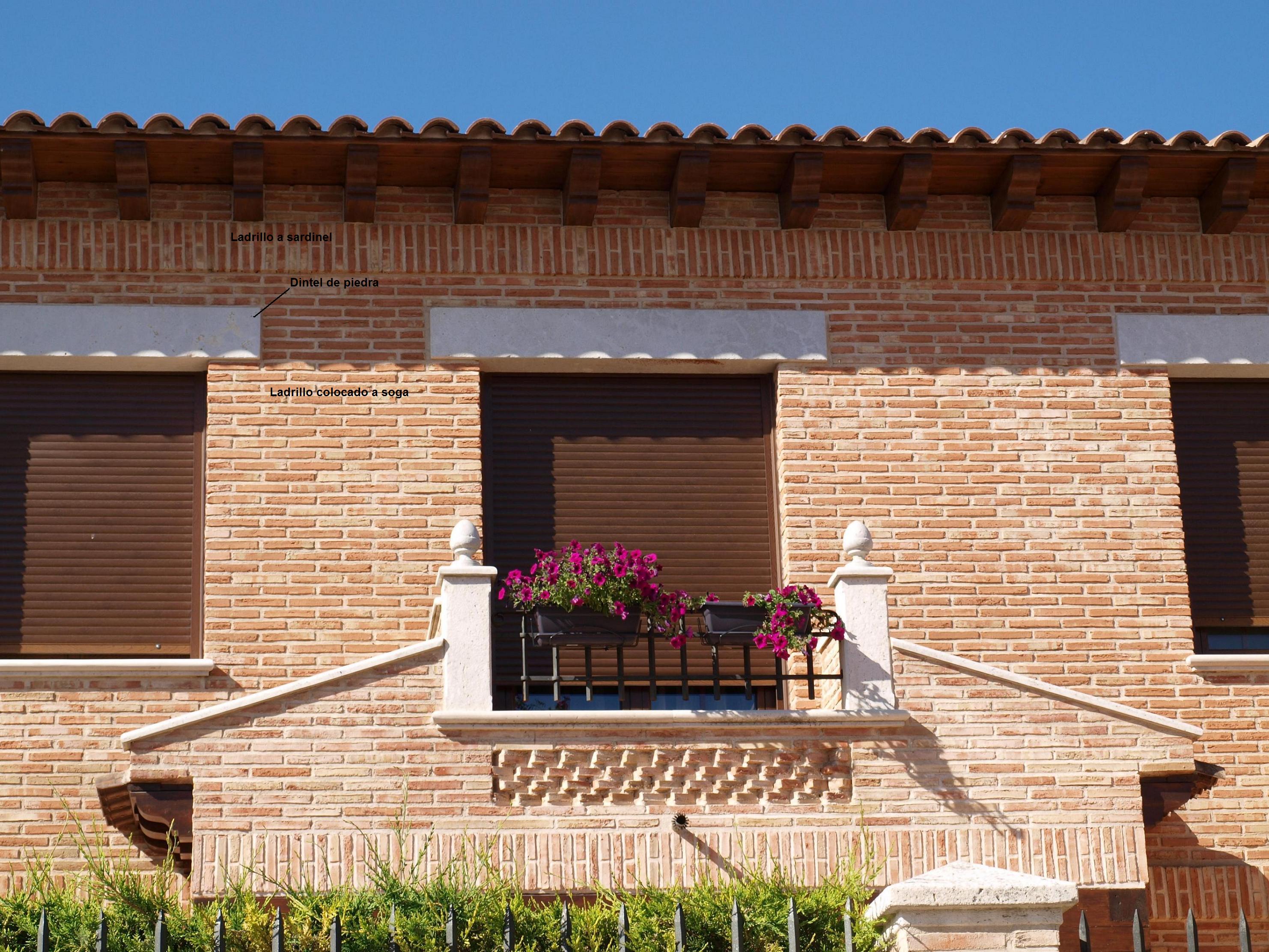 Si me permites, sin animo de ofender, bajo mi punto de vista y para darle mas realismo a las fabricas de ladrillo visto, hay varias formas de hacer los dinteles de puertas o ventanas, colocando los cargaderos vistos sin revoco de madera o piedra y encima colocamos la fabrica de ladrillo visto a soga, que así se llama como tu tienes colocado el ladrillo, y otra es haciendo el dintel con la misma fabrica de ladrillo, colocada a sardinel, como el arco que has hecho.