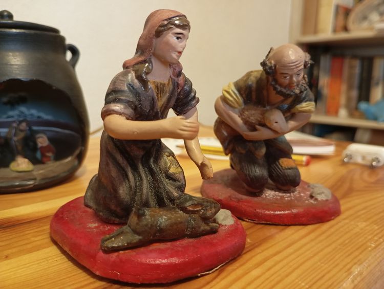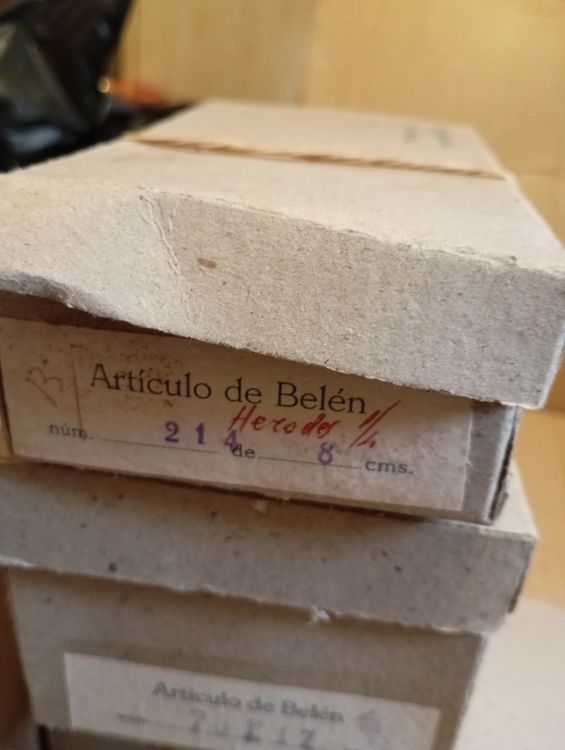 No conozco nada del mundo del los belenes y veo que aquí hay mucho nivel, adjunto una serie de fotos de algunas figuras y de las cajas en las que pone lo que contienen (no he desempaquetado todo), si alguien puede aportar luz sobre él, toda información es bienvenida.