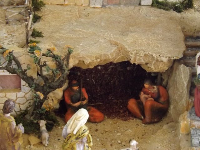 Aclaraciones: por la construcción del belén no ha sido utilizado nada que no se encuentra en naturaleza [albañilerías, gruta, rocas etcétera provienen de material retirado por las pequeñas canteras de "piedra" amolará presentes en mi zona e incididas donde necesario con la técnica usada por nuestros "viejos", la coloración y el terreno son conseguidos con el mantillo de tales sitios, las plantas de raíces, las flores de flores de una particular planta encontradas en el bosque].