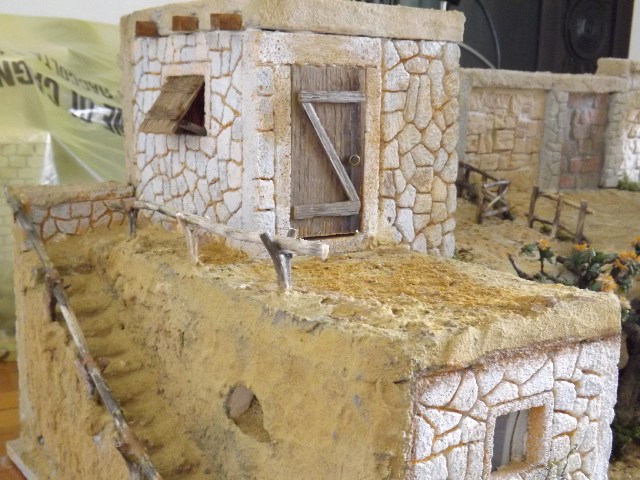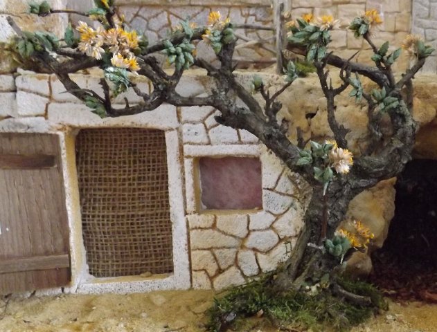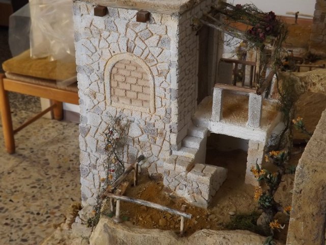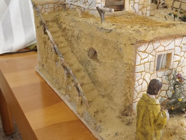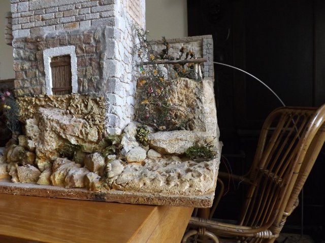 Aclaraciones: por la construcción del belén no ha sido utilizado nada que no se encuentra en naturaleza [albañilerías, gruta, rocas etcétera provienen de material retirado por las pequeñas canteras de "piedra" amolará presentes en mi zona e incididas donde necesario con la técnica usada por nuestros "viejos", la coloración y el terreno son conseguidos con el mantillo de tales sitios, las plantas de raíces, las flores de flores de una particular planta encontradas en el bosque].