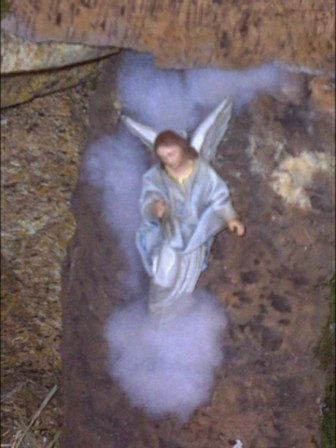 Os presento el belén parroquial del año 2004, segundo año que lo montaba. El primer año, en el 2003, tenía forma de I alargada; al siguiente año, que podéis ver en las fotos, ya tenía la forma de L, así hasta el 2005. Ese año quisimos (el párroco y yo) colocar sólo las piezas nuevas del belén: Misterio, Reyes, Anunciación (al año siguiente adquiriríamos una nueva más grande) y pastores. Las únicas piezas antiguas que colocamos fueron los Reyes en adoración, que podeís ver igualmente.