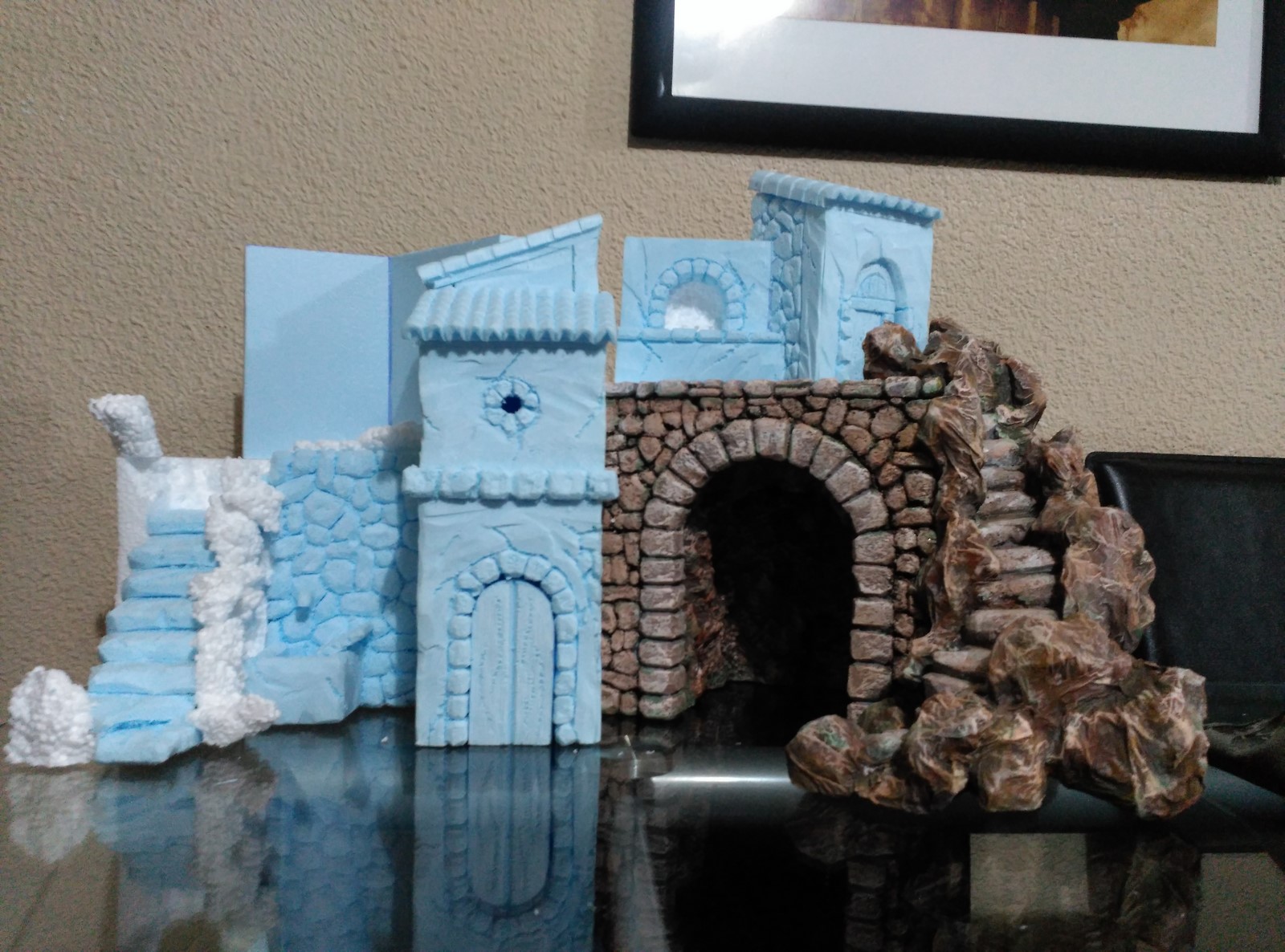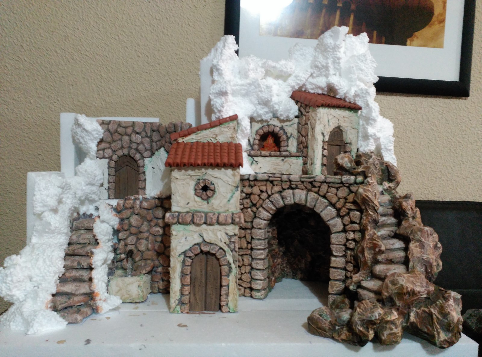 Hola aqui estamos de nuevo, saludos a todos, este año empiezo con un belen que me encargo un primo para colocarlo en un hueco del mueble del salon, la idea esta copiada de uno que vi por internet, aunque como siempre digo a mi humilde manera, para los de las medidas os dire que mide 60 cm de ancho, 30 cm de fondo y 55 cm de alto, es para figuritas muy pequeñas de unos 6/7 cm. espero os guste y gracias.