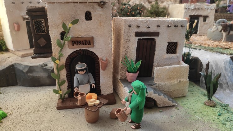 Hola a todos. Antes de nada quiero agradecer a todas las personas que comparten sus conocimientos y de las que hemos aprendido para poder llevar a cabo el belén de este año. Decidí aprovechar los playmobil de mi hija y así también convertirlo en algo que ella pudiera considerar divertido. He contado con la inestimable ayuda de mi madre que ha hecho con sus manitas todas las casas, vegetación y ropas. Yo me he encargado del terreno, electricidad y movimiento. Os pongo algunas fotos. Un abrazo a todos.