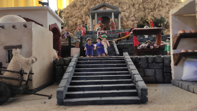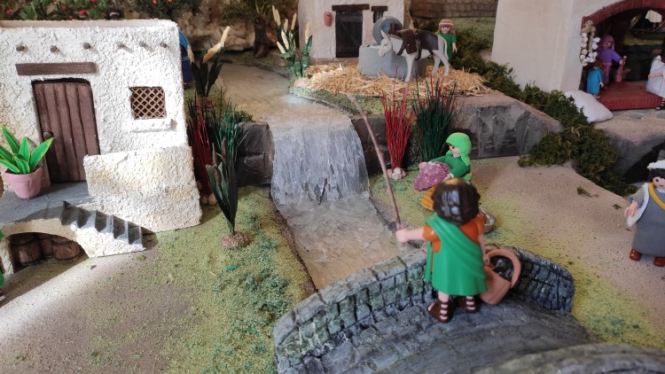 Hola a todos. Antes de nada quiero agradecer a todas las personas que comparten sus conocimientos y de las que hemos aprendido para poder llevar a cabo el belén de este año. Decidí aprovechar los playmobil de mi hija y así también convertirlo en algo que ella pudiera considerar divertido. He contado con la inestimable ayuda de mi madre que ha hecho con sus manitas todas las casas, vegetación y ropas. Yo me he encargado del terreno, electricidad y movimiento. Os pongo algunas fotos. Un abrazo a todos.