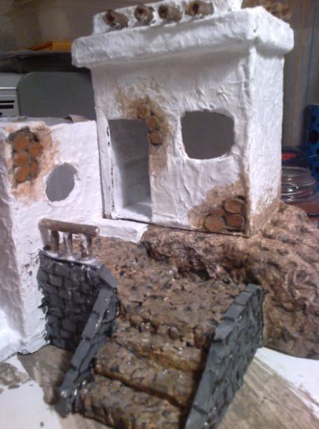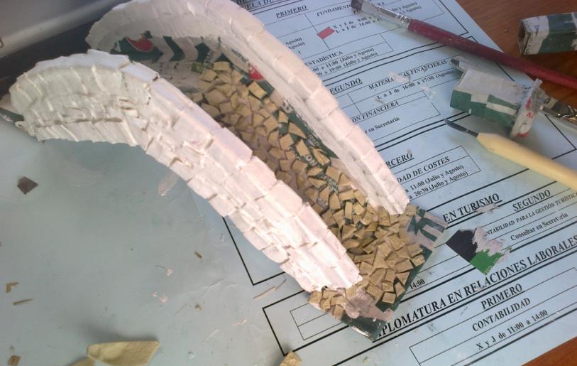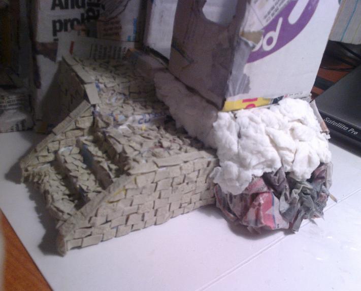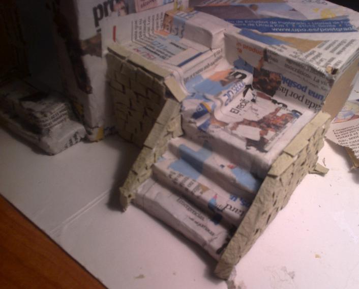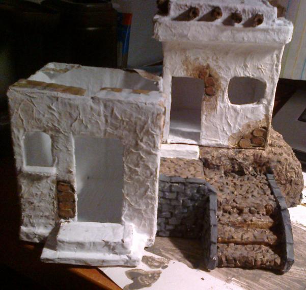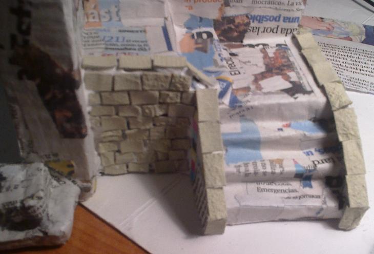 Os presento aqui mis primeros trabajos para un belen que voy a hacer.. como no tengo ni idea de belenismo ni de cómo hacer las cosas lo que he hecho es todo con cosas recicladas: cartones de cajas de leche, bandejas de poliespan de carne, pescado, etc; papel de periodico, papel higiénico, ramas cogidas de la calle.. bueno y cola blanca y pinturas.