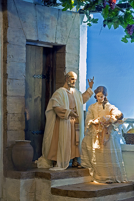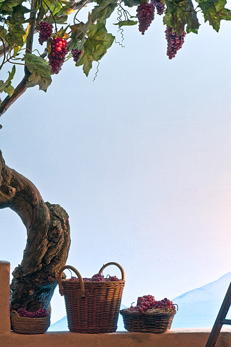 Me alegro de que os guste. Creo que la sencillez es lo mejor parar hacer llegar el mensaje. Soy partidario de acabados muy cuidados, escrupuloso con las proporciones que hacen que la escena sea creíble y escueto en los elementos complementarios. Lo impo. rtante es la Sagrada Familia y todo los demas debe contribuir a realzarla. Se melvidaba: la luz es primordial. Yo tengo fijación con esto, pues creo que lo que hacemos es teatro y en el teatro la iluminación es básica. En cuanto a la parra; sí es natural el tronco y las ramas que he ido pegando una a una. La hojas son de tela y las uvas de fimo, tambien a escala 1 a 3.
